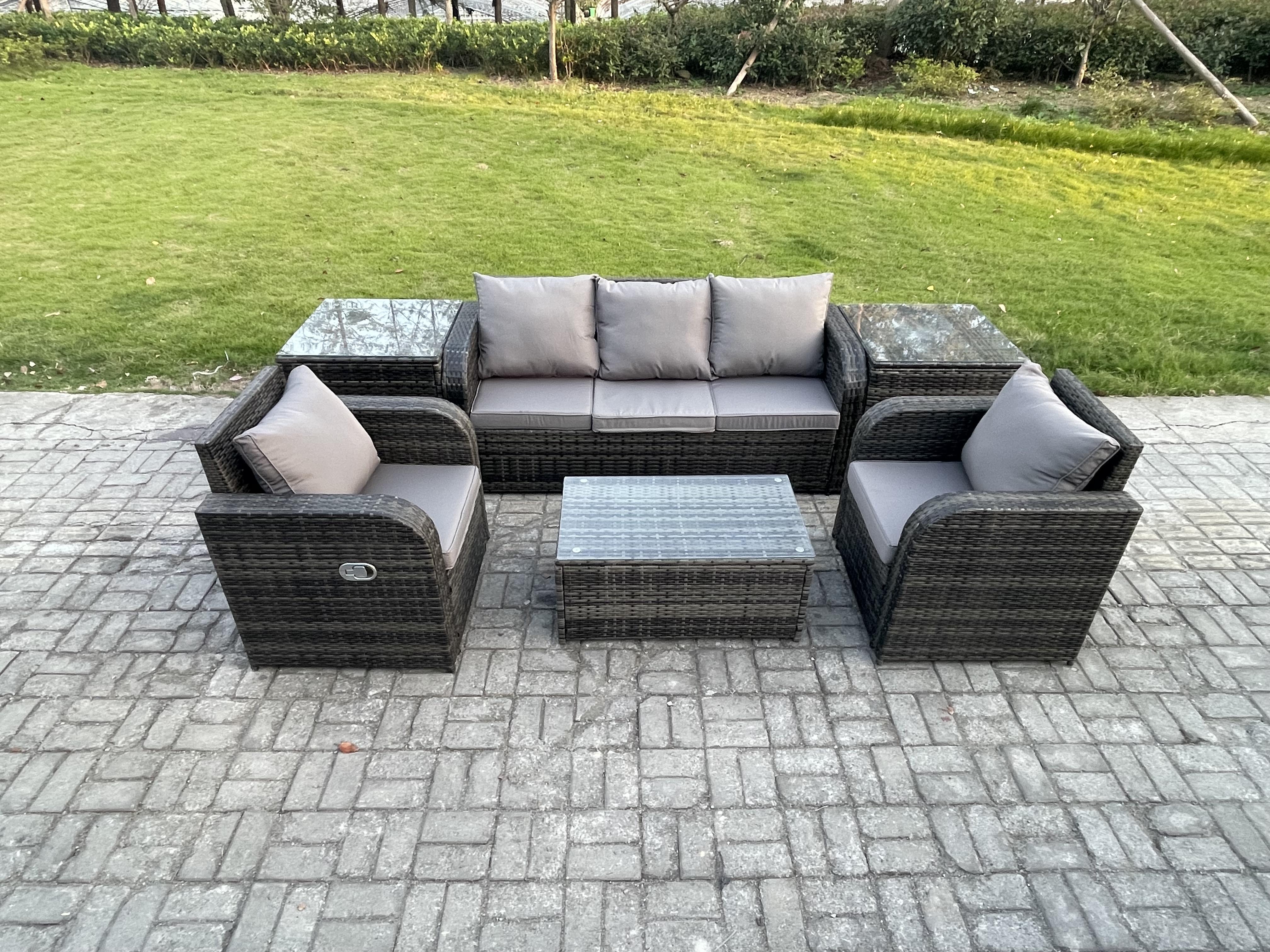 Salon de jardin exterieur Ensemble de canapés en rotin avec Chaise inclinable Table basse rectangulaire 2 Tables d'appoint Gris foncé mixte
