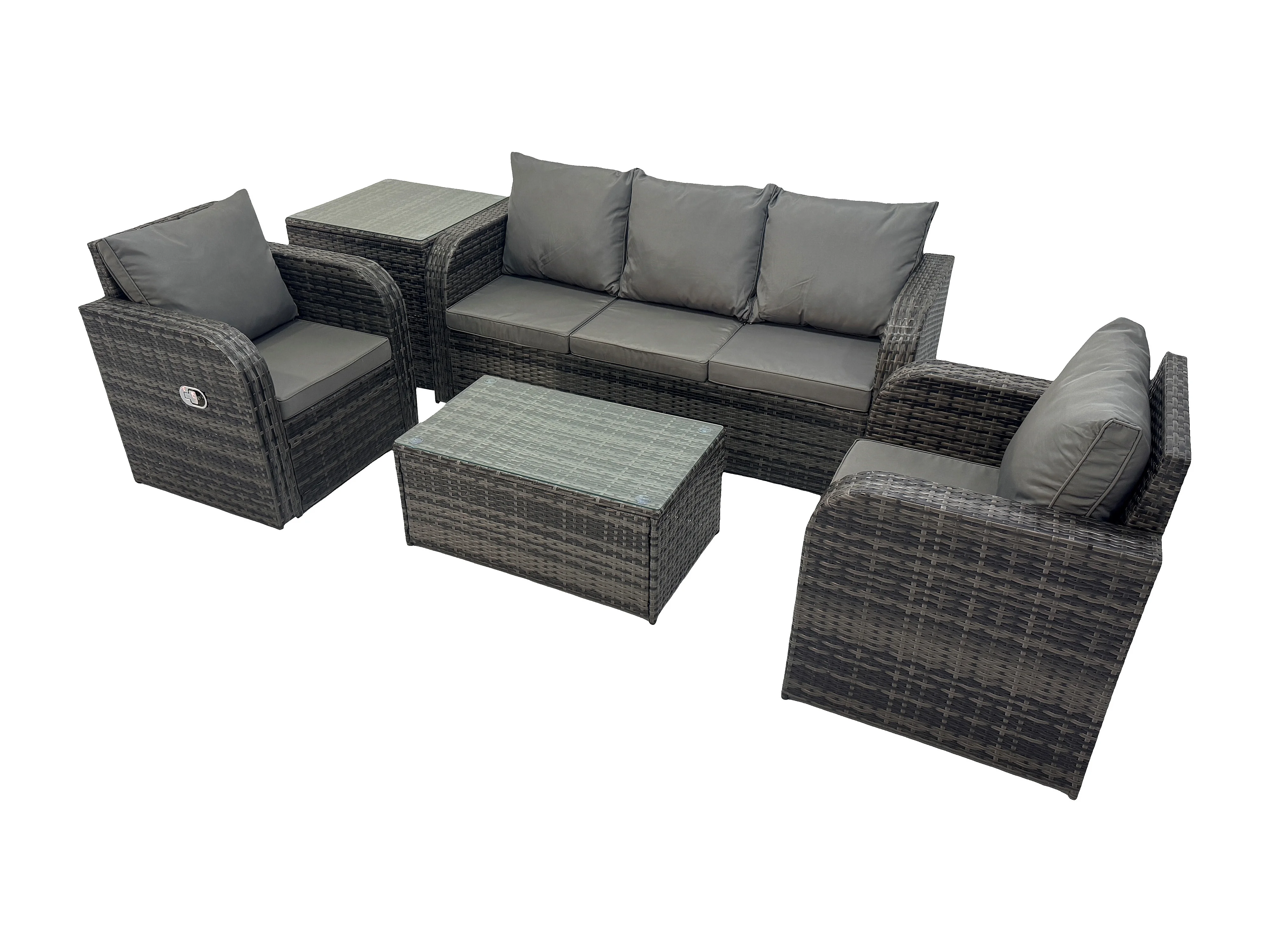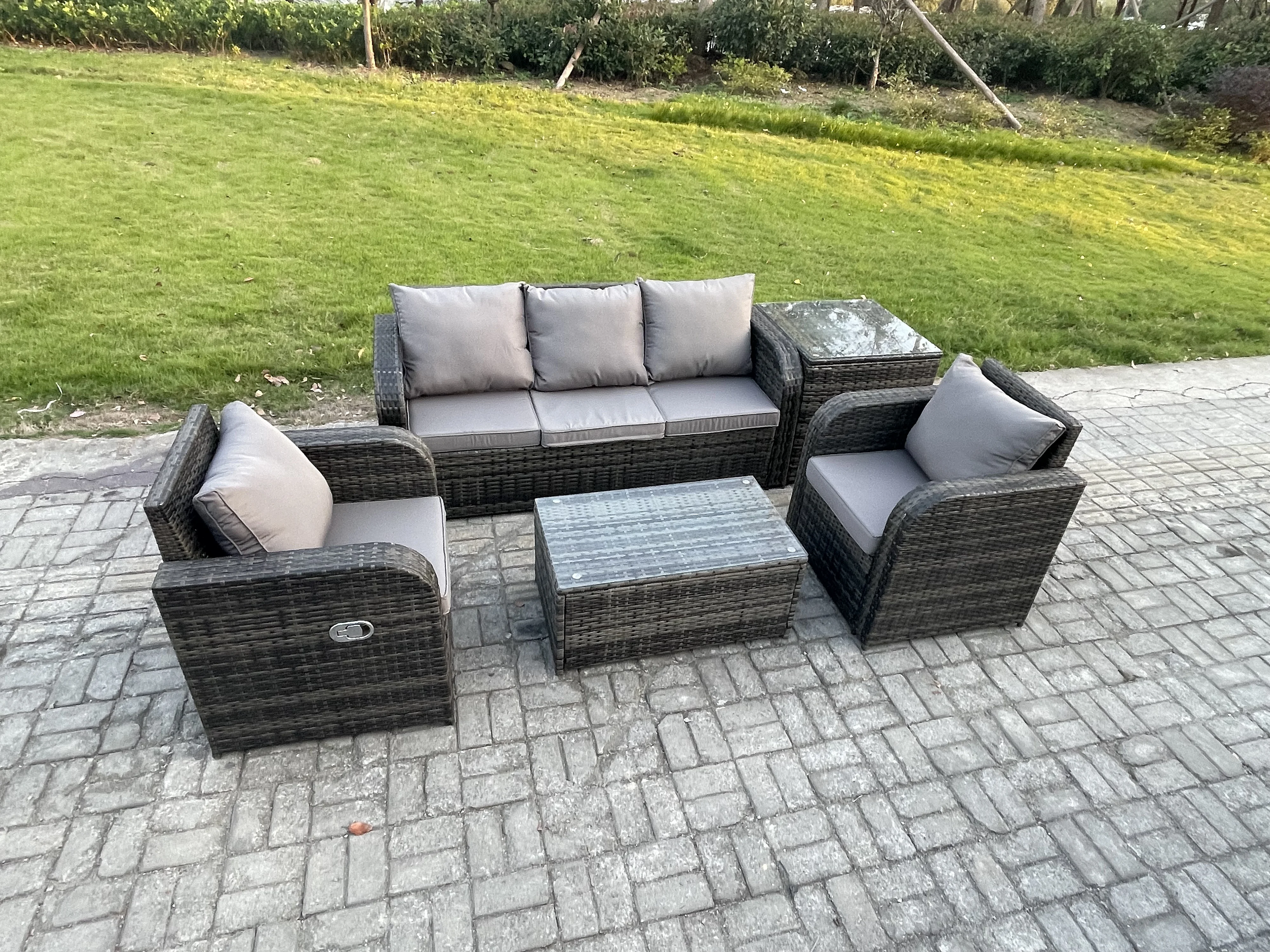 Salon de jardin exterieur Ensemble de canapés en rotin avec Chaise inclinable Table basse rectangulaire Table d'appoint Gris foncé mixte