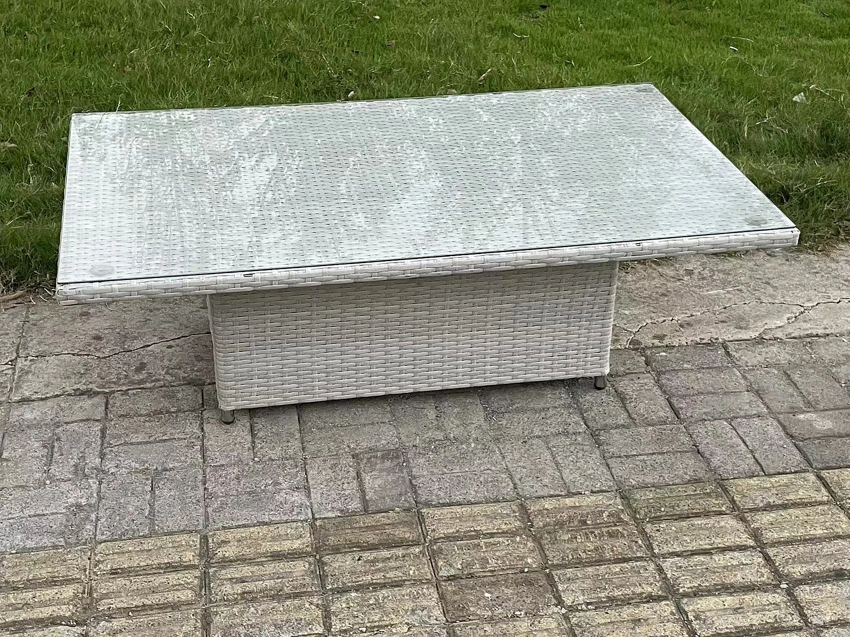 Salon de Jardin Exterieur Table à manger réglable en hauteur ave canapé Fauteuil Table d'appoint Grand Tabourets Gris Clair