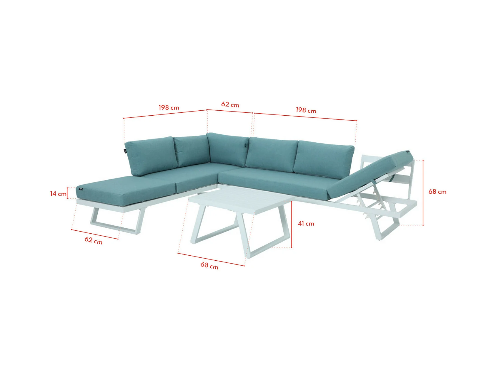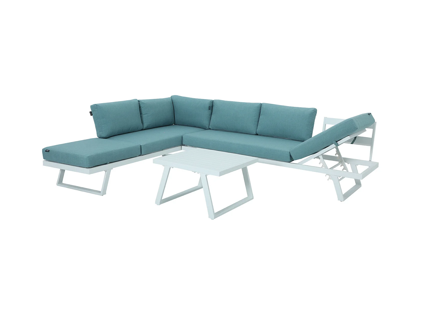 Salon de jardin fonctionnel modulable en aluminium design - blanc vert - HELIOS