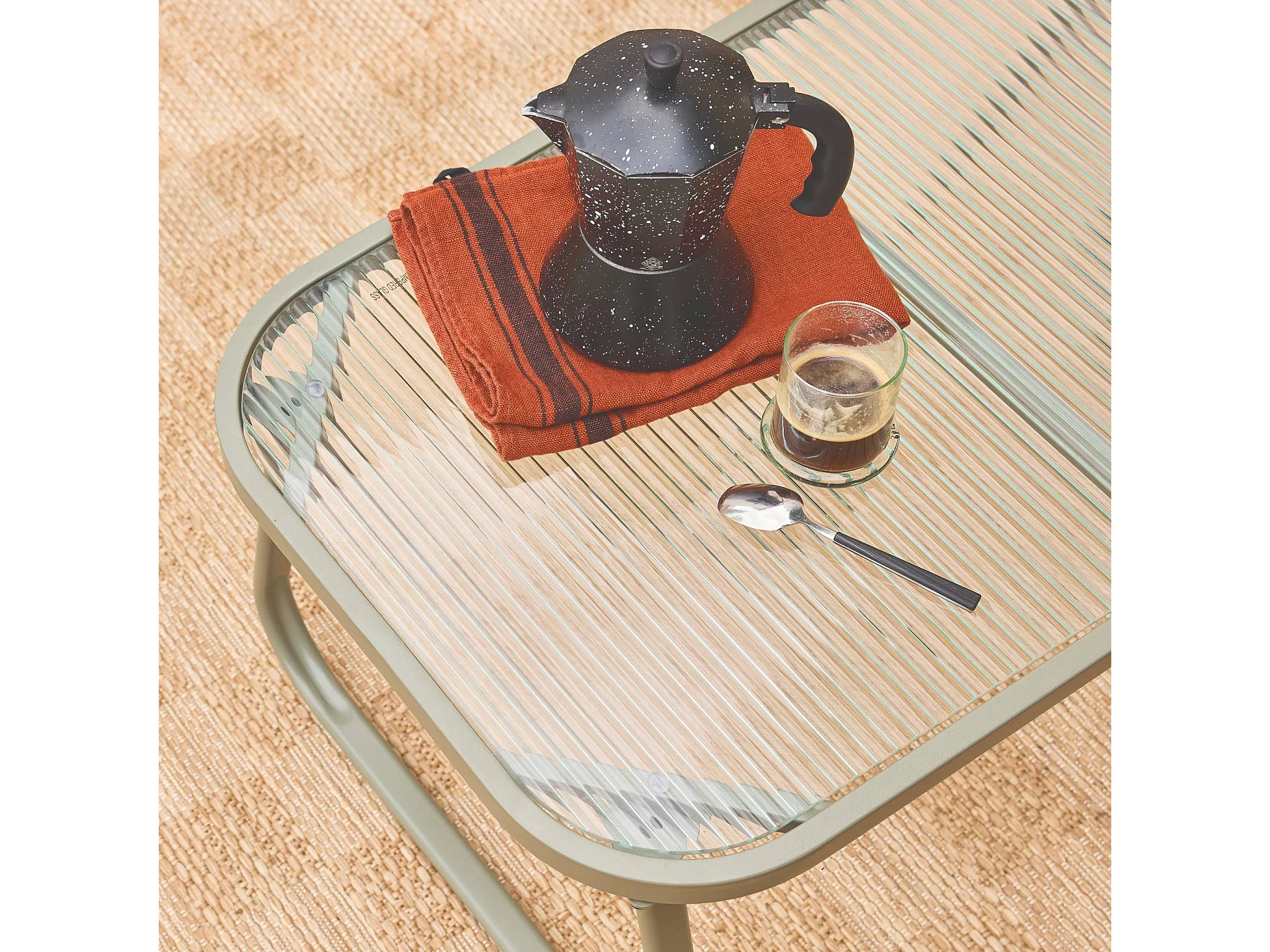 Salon de jardin acier SOFIA kaki et beige. 4 places. table rectangulaire