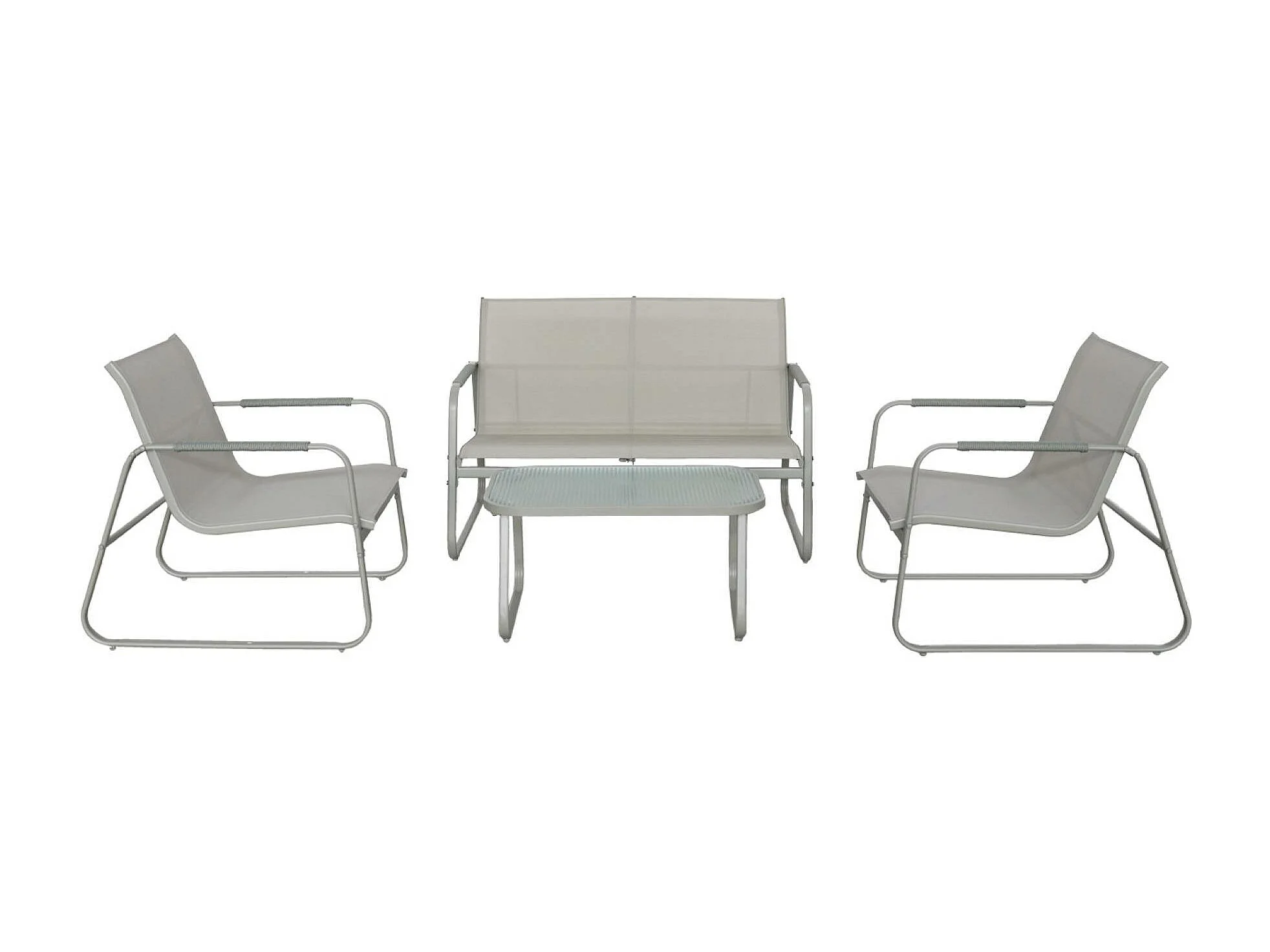 Salon de jardin 4 places avec table en métal. avec des sangles. savane