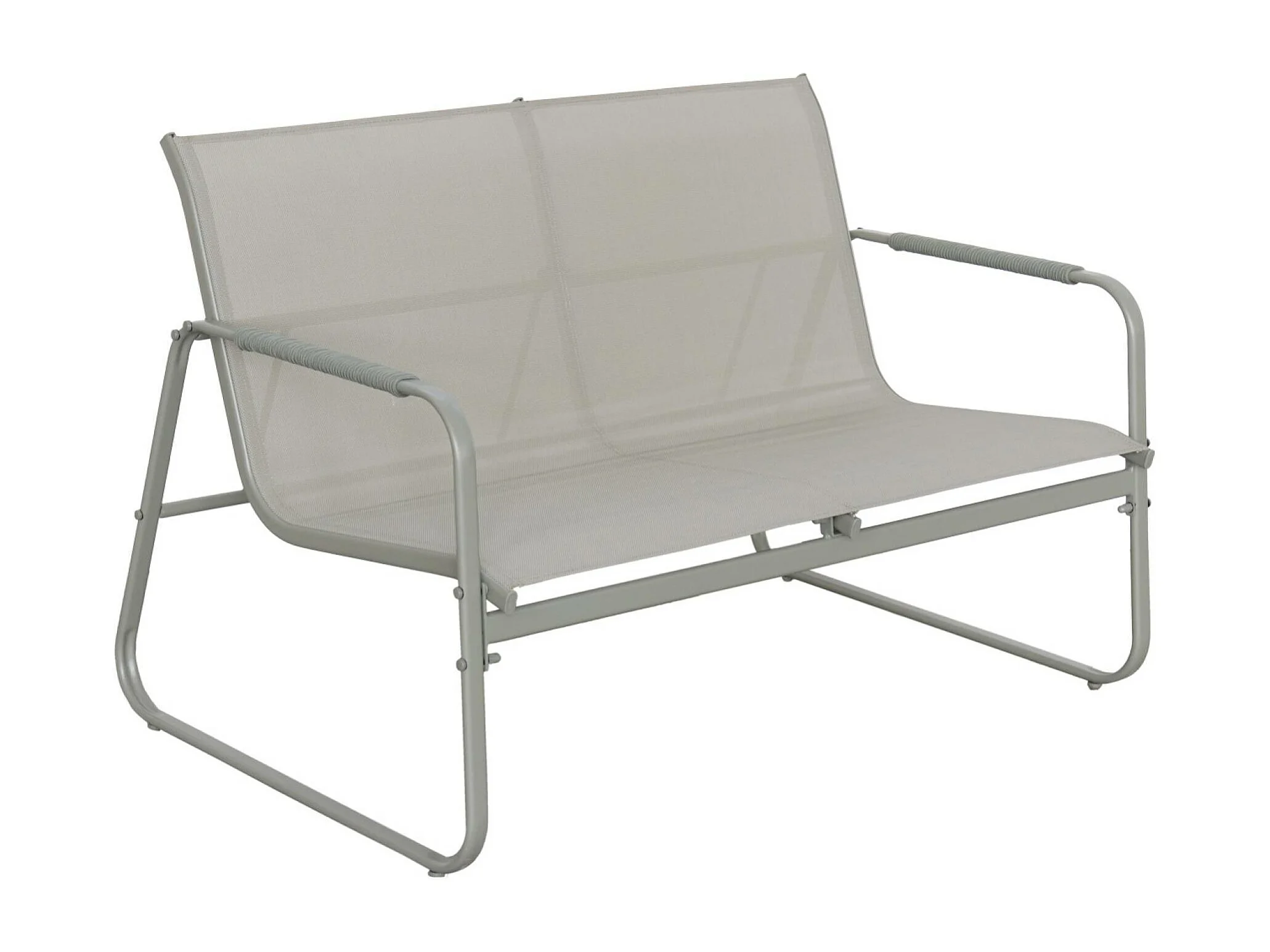 Salon de jardin kaki NOTO acier. 4 places. un canapé. une table. deux fauteuils textilene