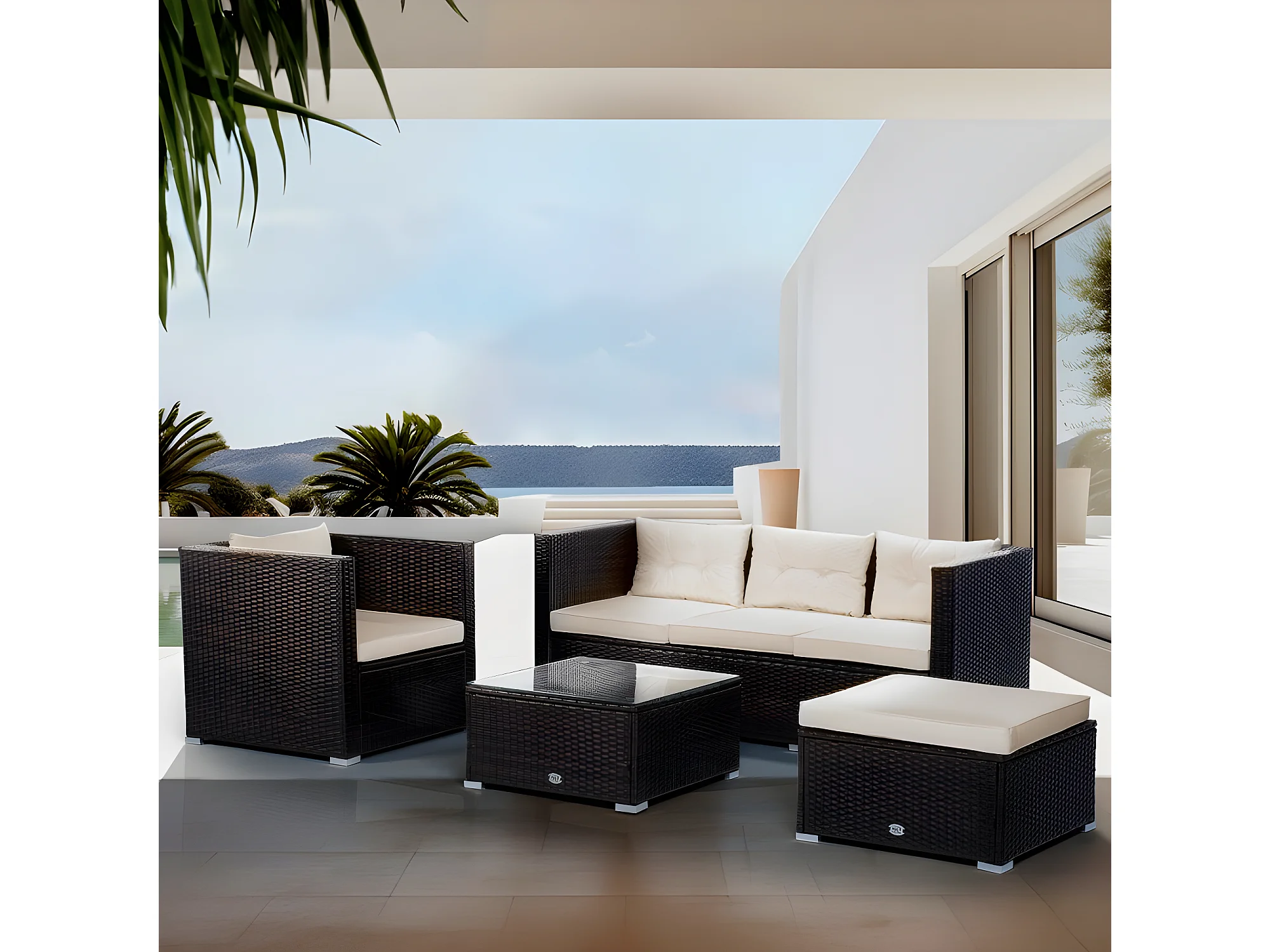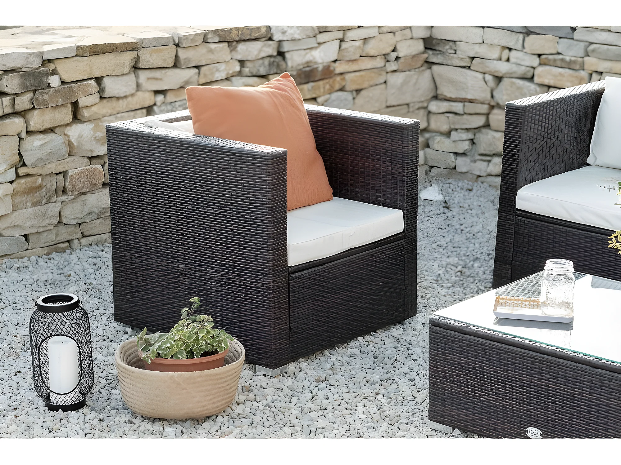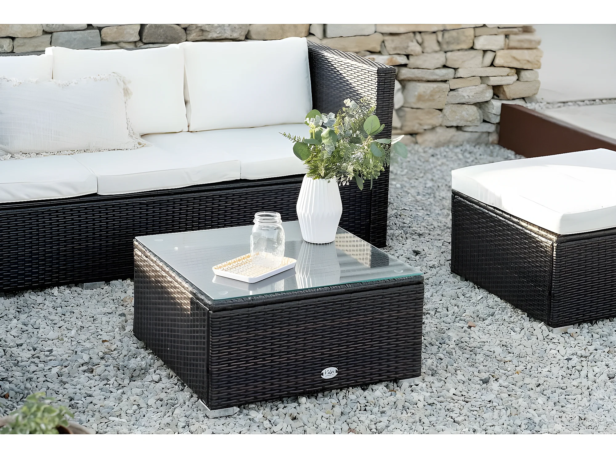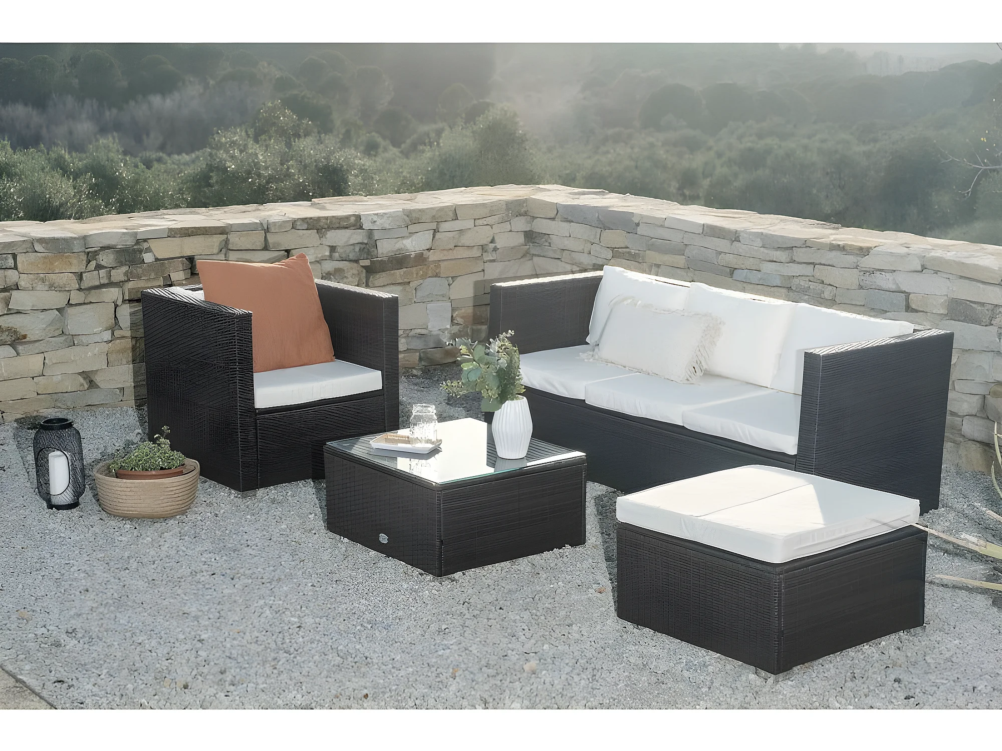 Salon de jardin Los Ángeles 5 Places Marron Chocolat Rotin Synethétique Kiefergarden