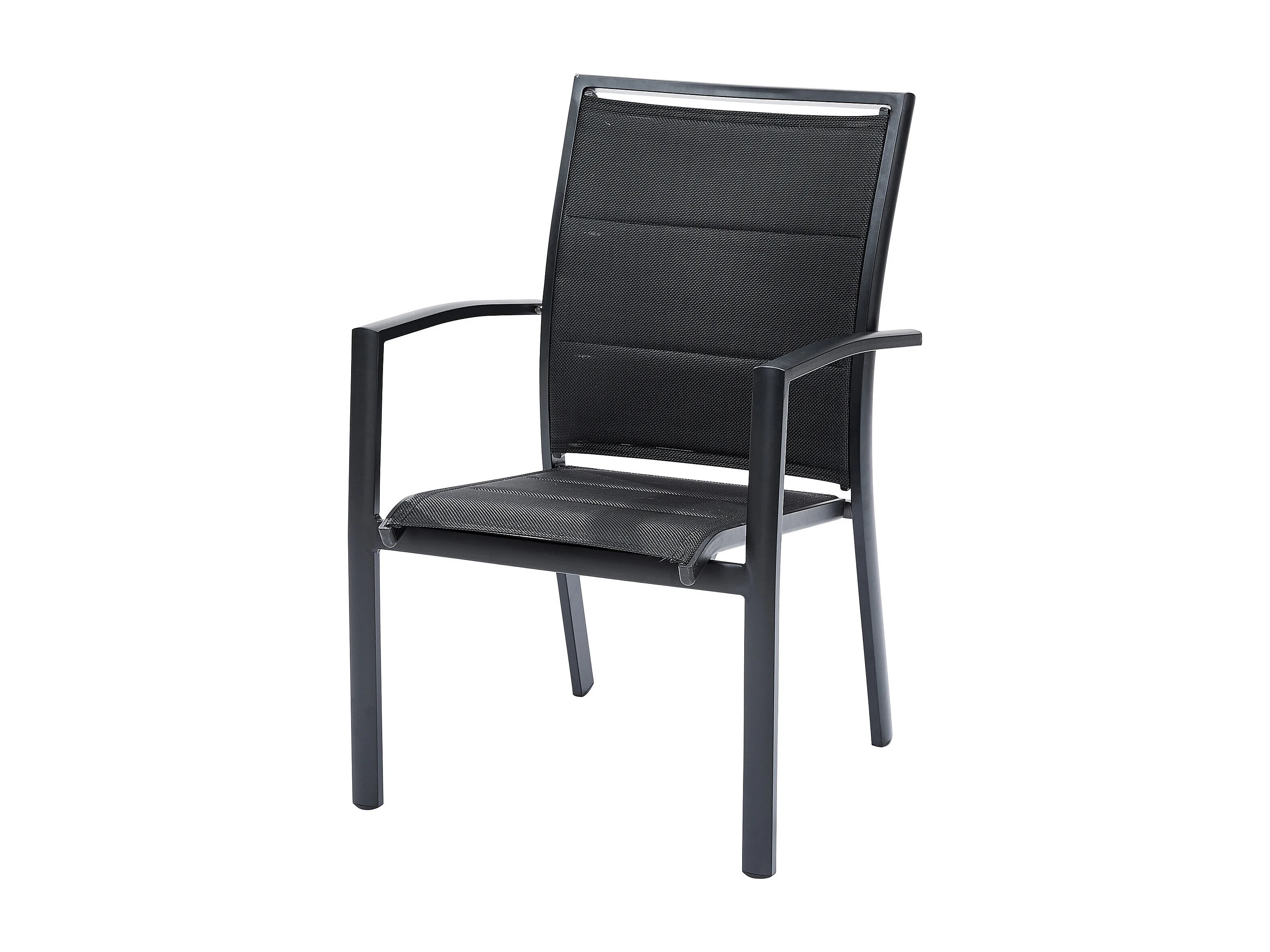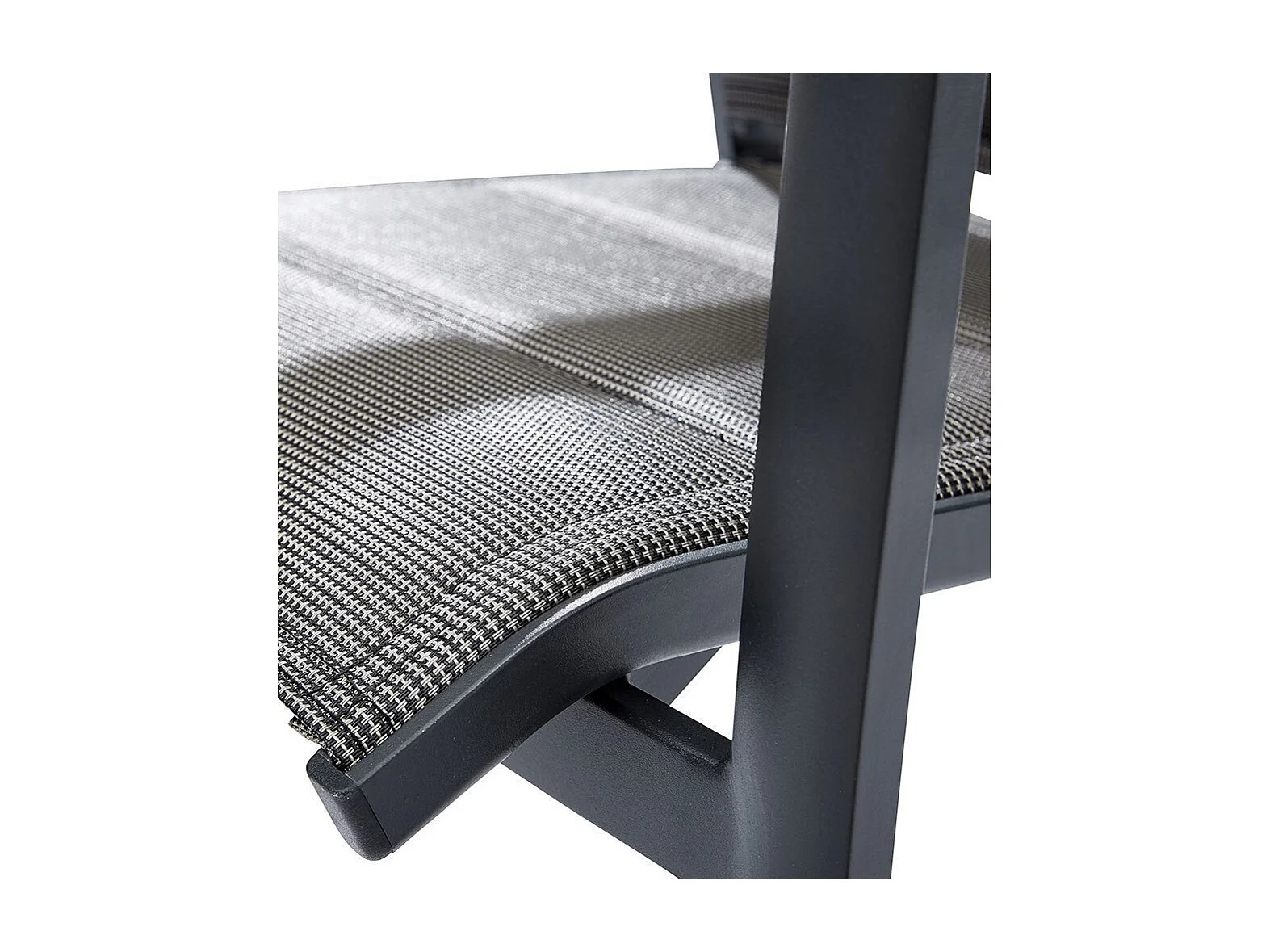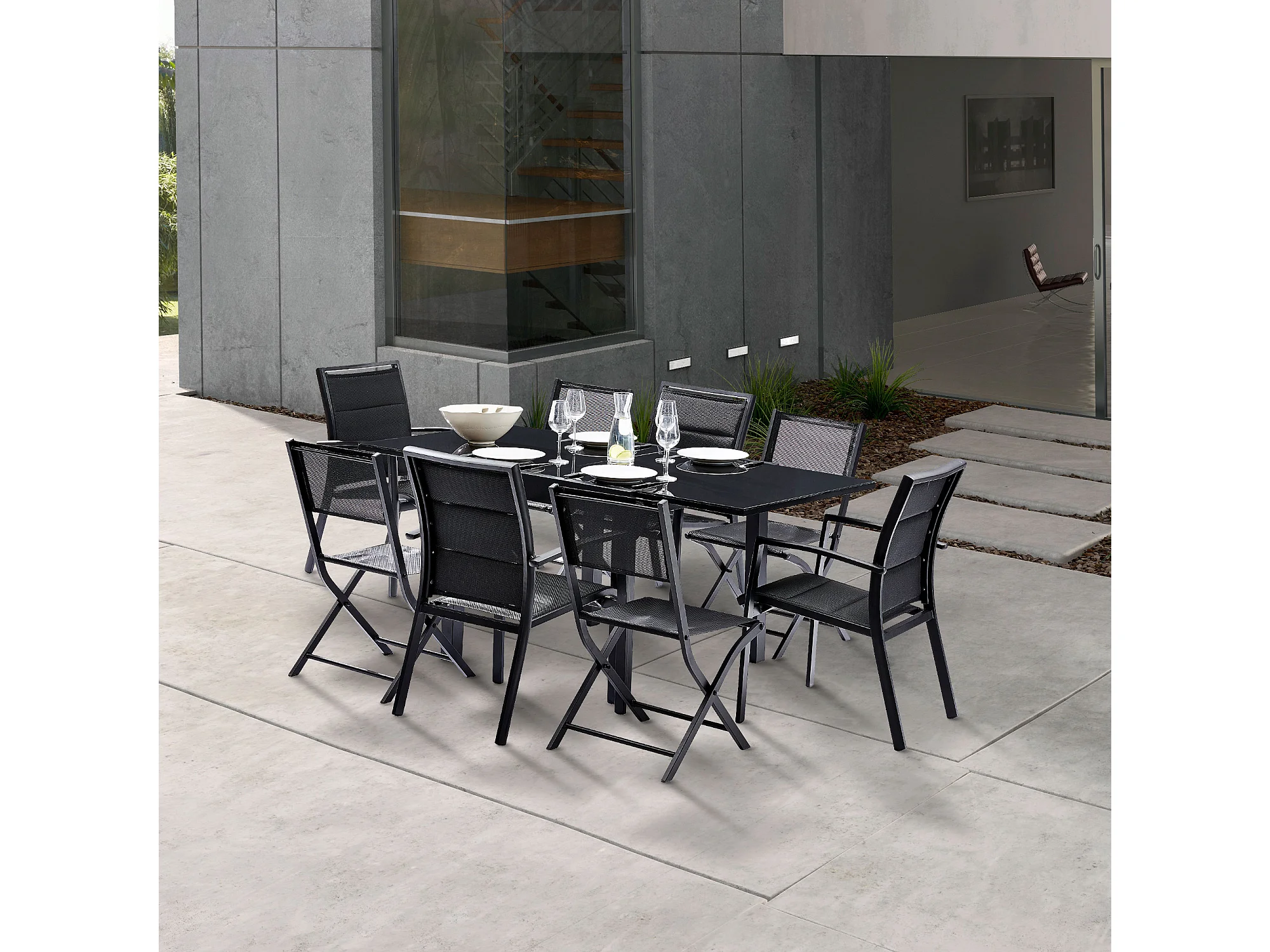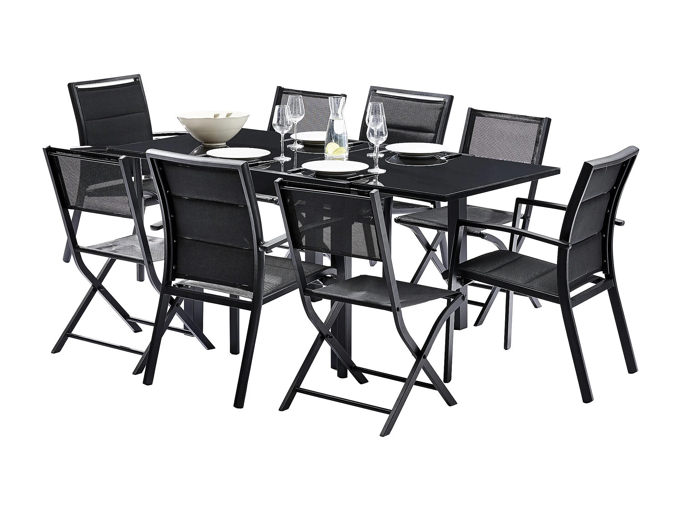 Ensemble MODULO 4/8p en aluminium noir et verre trempé modulable et 4 fauteuils