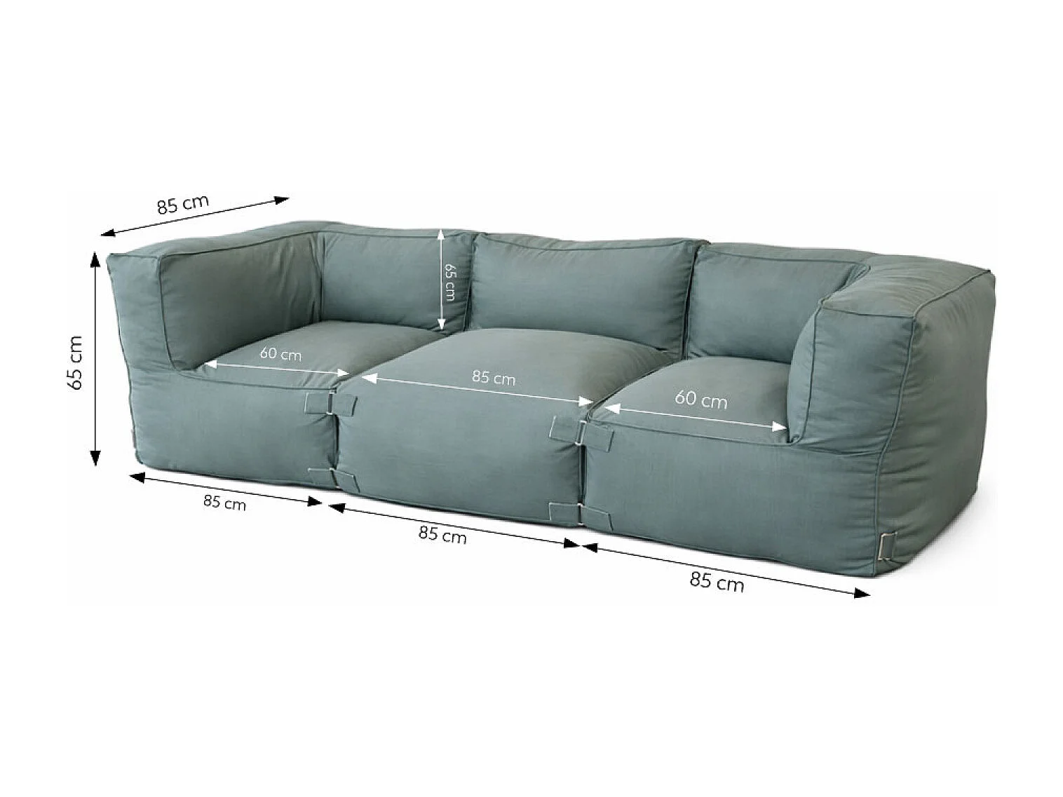 Salon de jardin modulable 3 places vert en tissu déperlant PRAIANO