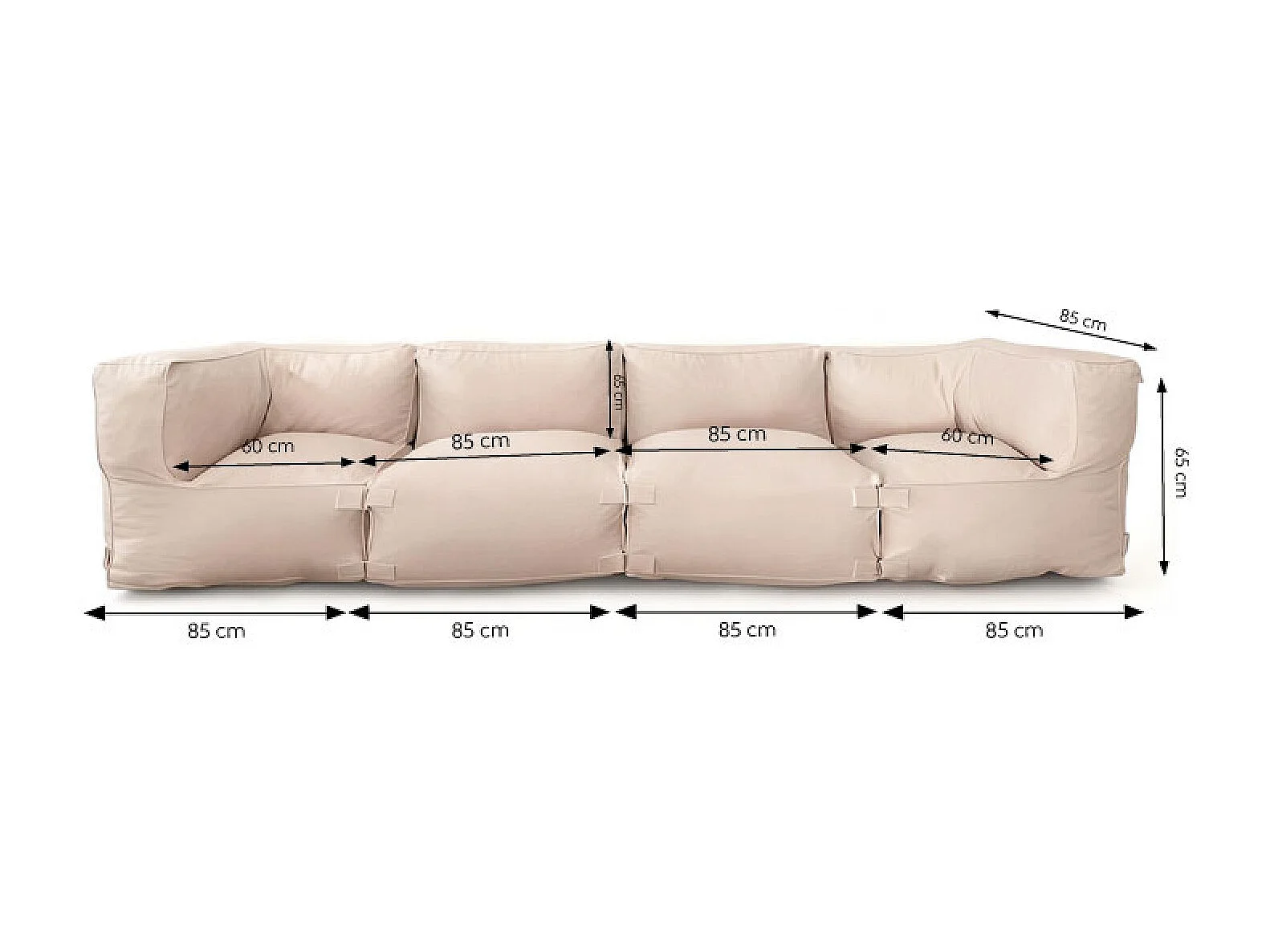 Salon de jardin modulable 4 places beige en tissu déperlant PRAIANO