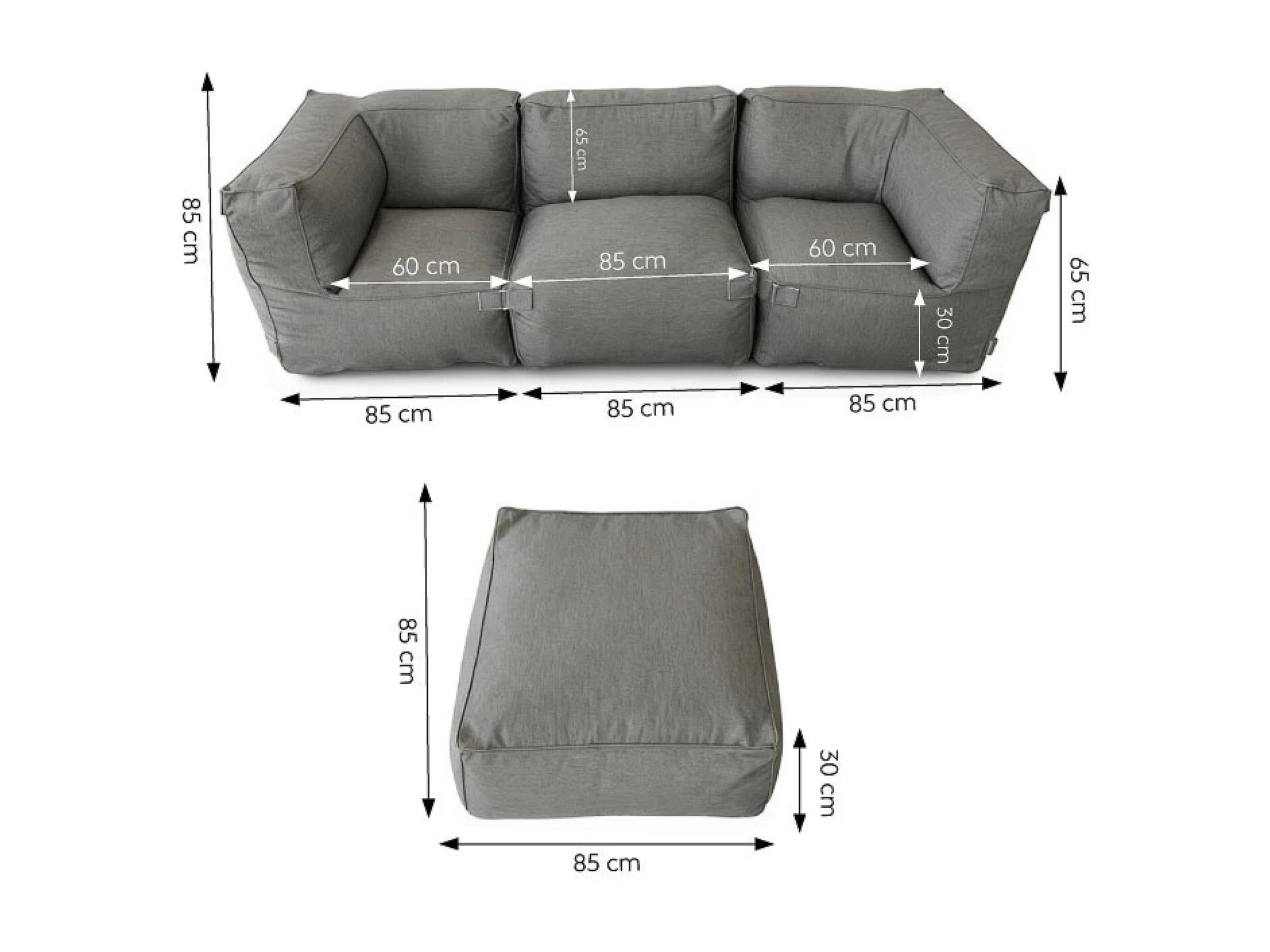 Salon de jardin modulable 4 places gris en tissu déperlant PRAIANO