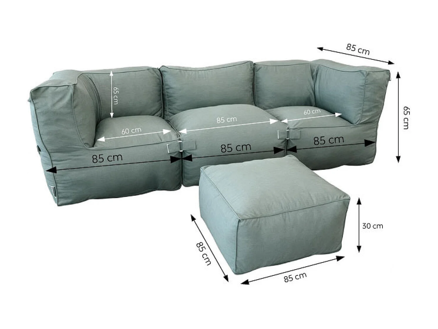 Salon de jardin modulable 4 places vert en tissu déperlant PRAIANO