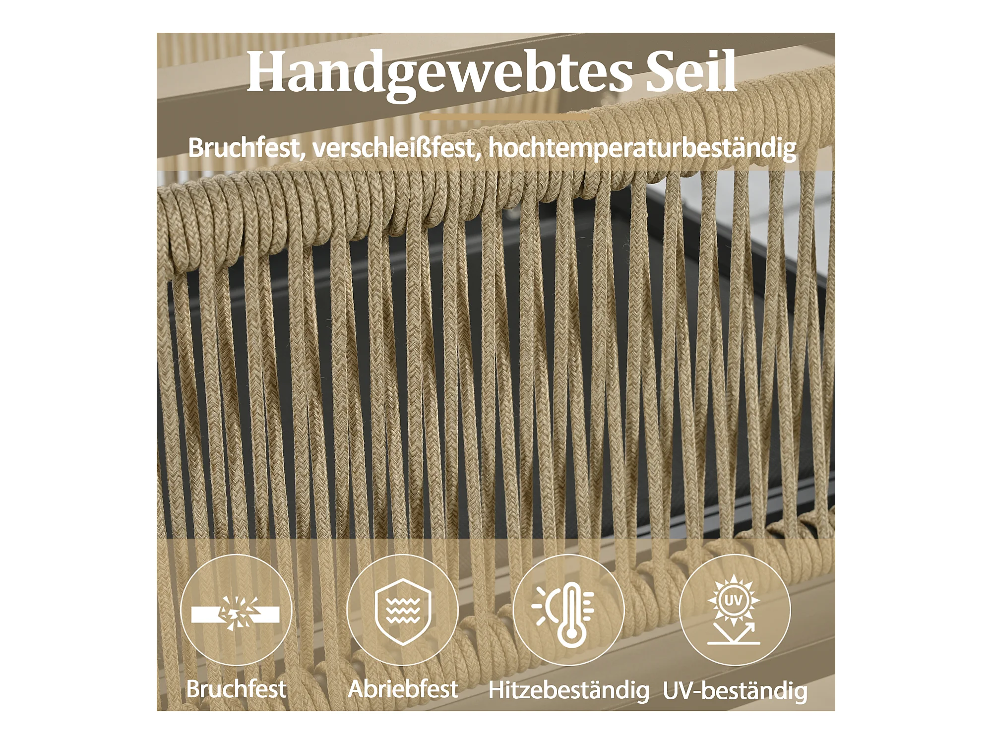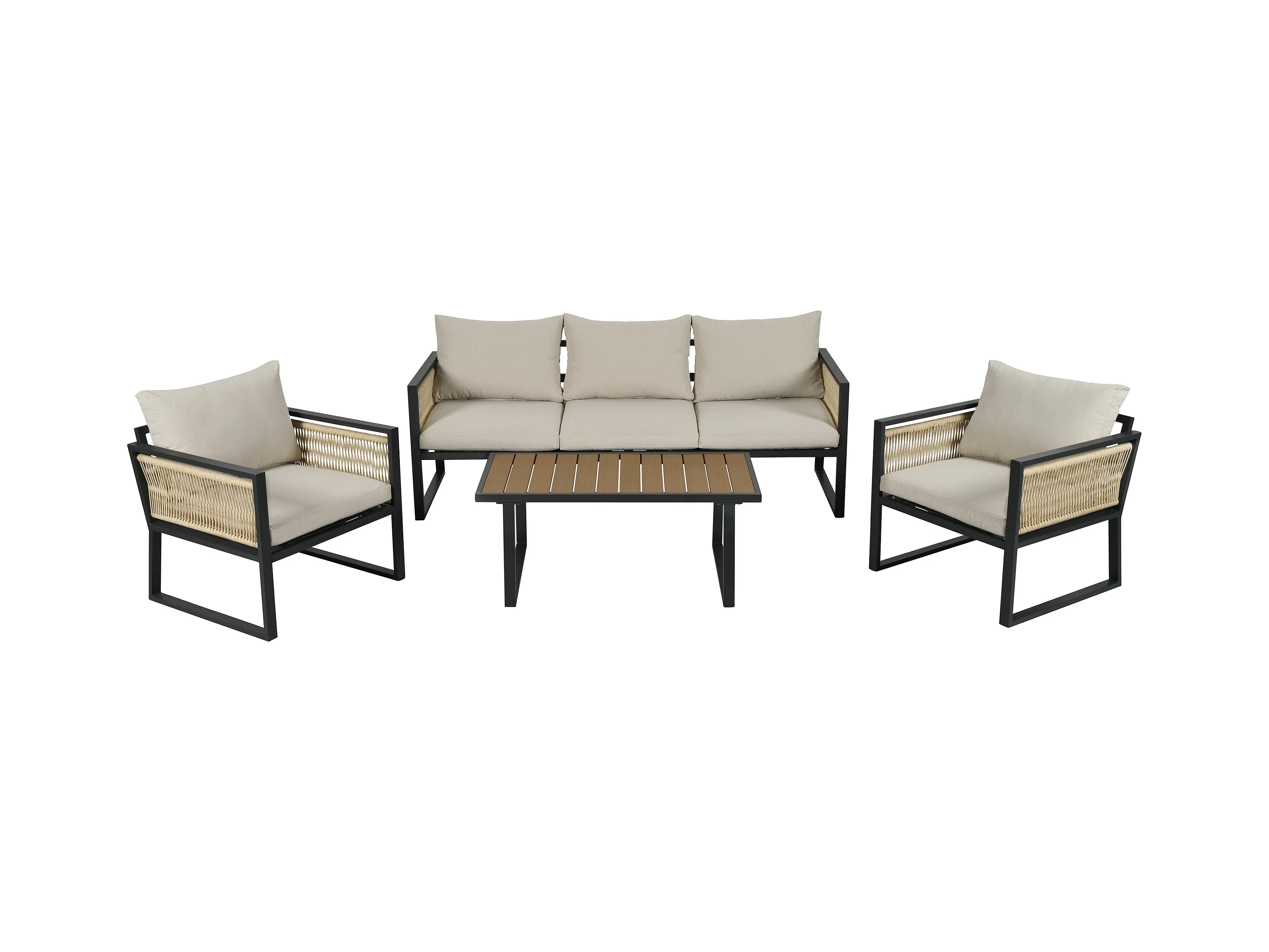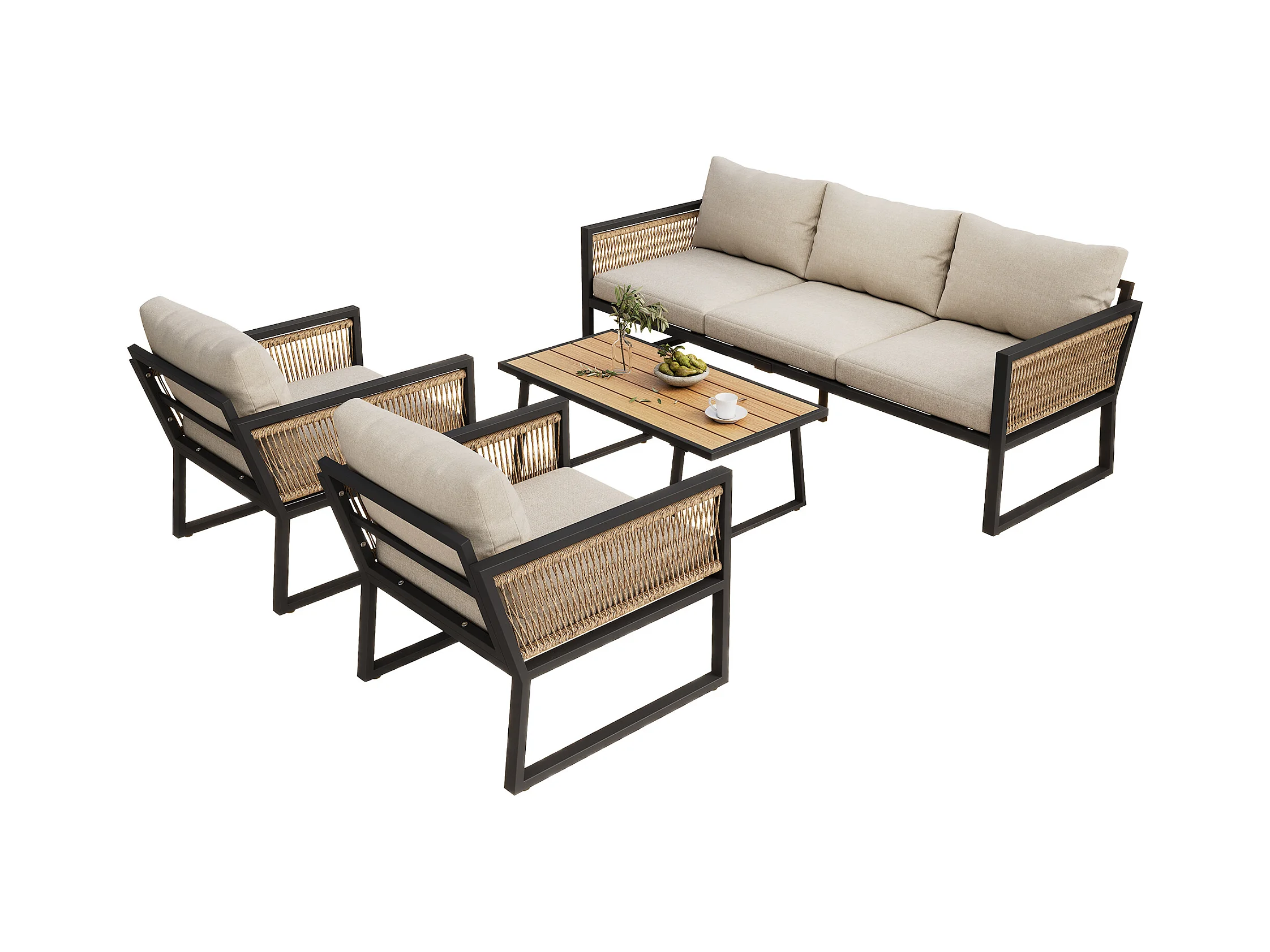 Salon de jardin modulable 5 places en acier galvanisé : 1 canapé 3 places + 2 fauteuils + table basse rectangulaire - Beige