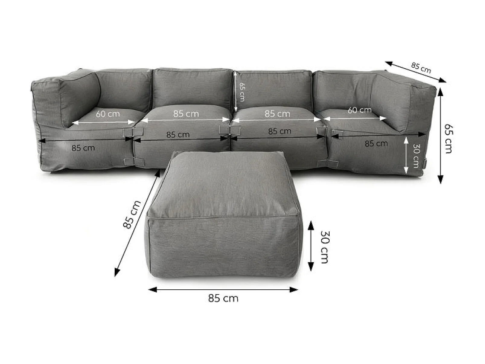Salon de jardin modulable 5 places gris en tissu déperlant PRAIANO