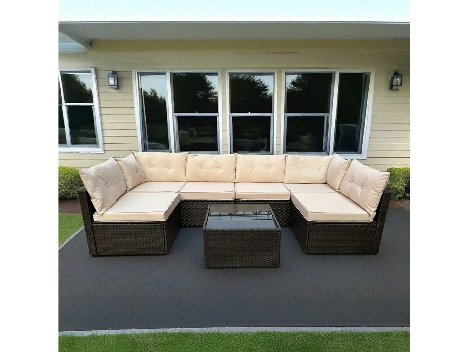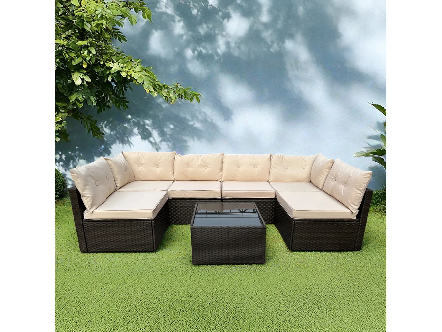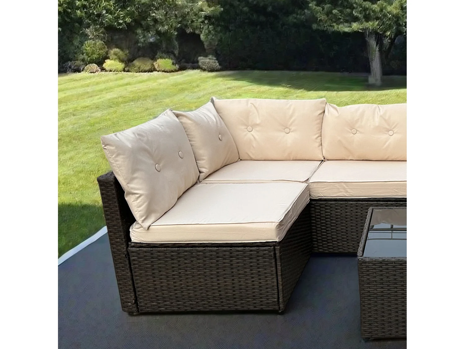 Salon de jardin modulable 6 places en résine tressée marron NACULA