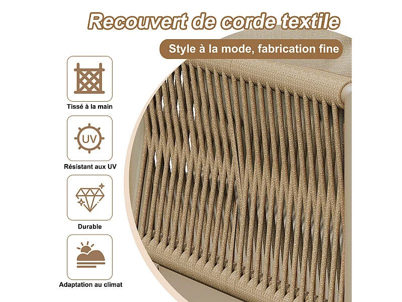 Salon de jardin modulable en métal: canapé 3 places d'angle, table basse en verre trempé - Kaki