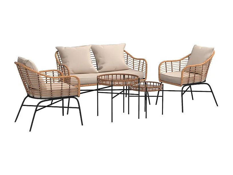 Salon de jardin MOOREA Coussins Beige En Acier et Rotin Naturel