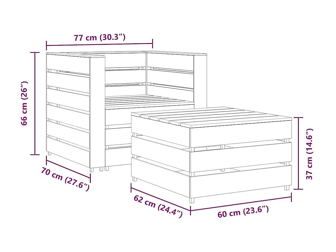 Salon de jardin palette 2 pcs Bois de pin imprégné