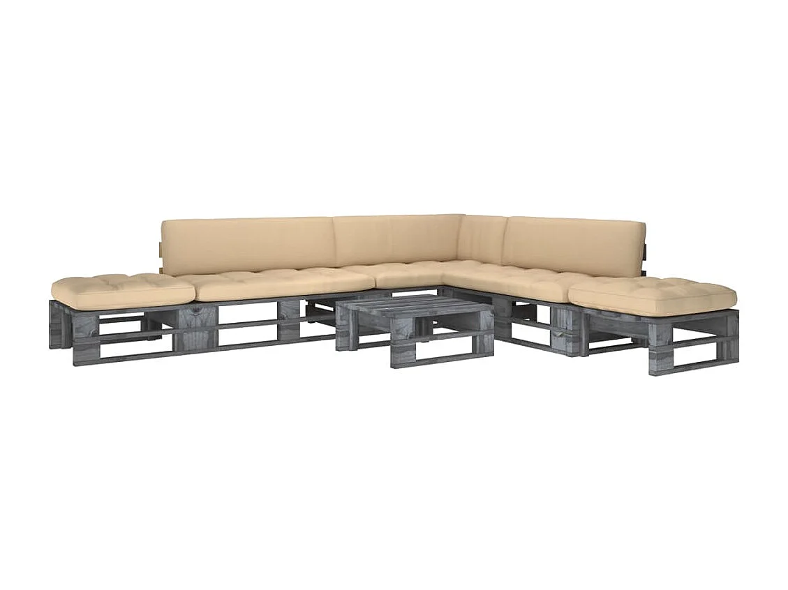 Salon de jardin palette 6pcs avec coussins Pin imprégné de gris