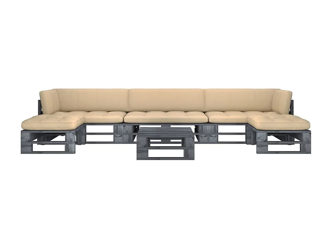 Salon de jardin palette 6pcs avec coussins Pin imprégné de gris