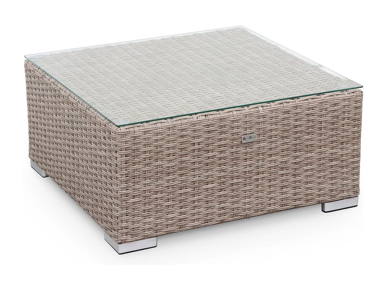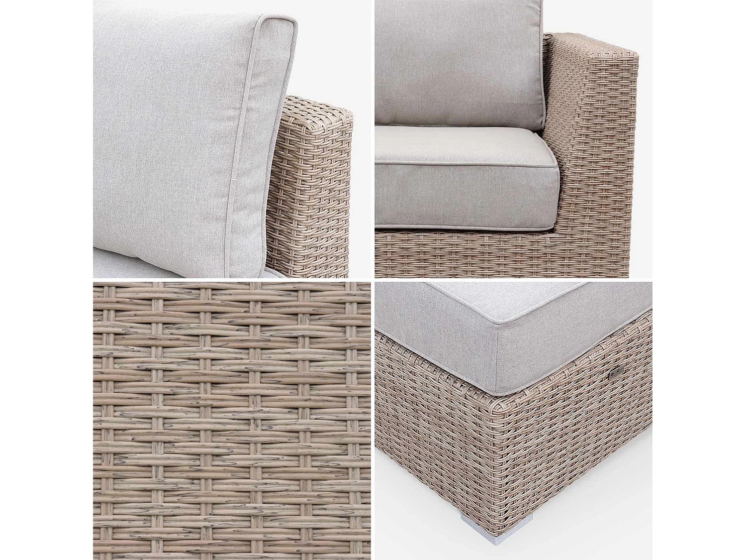 Salon de jardin Premium en résine tressée arrondie – VINCI – Résine naturelle style osier. coussins beiges – 5 places. haut de gamme