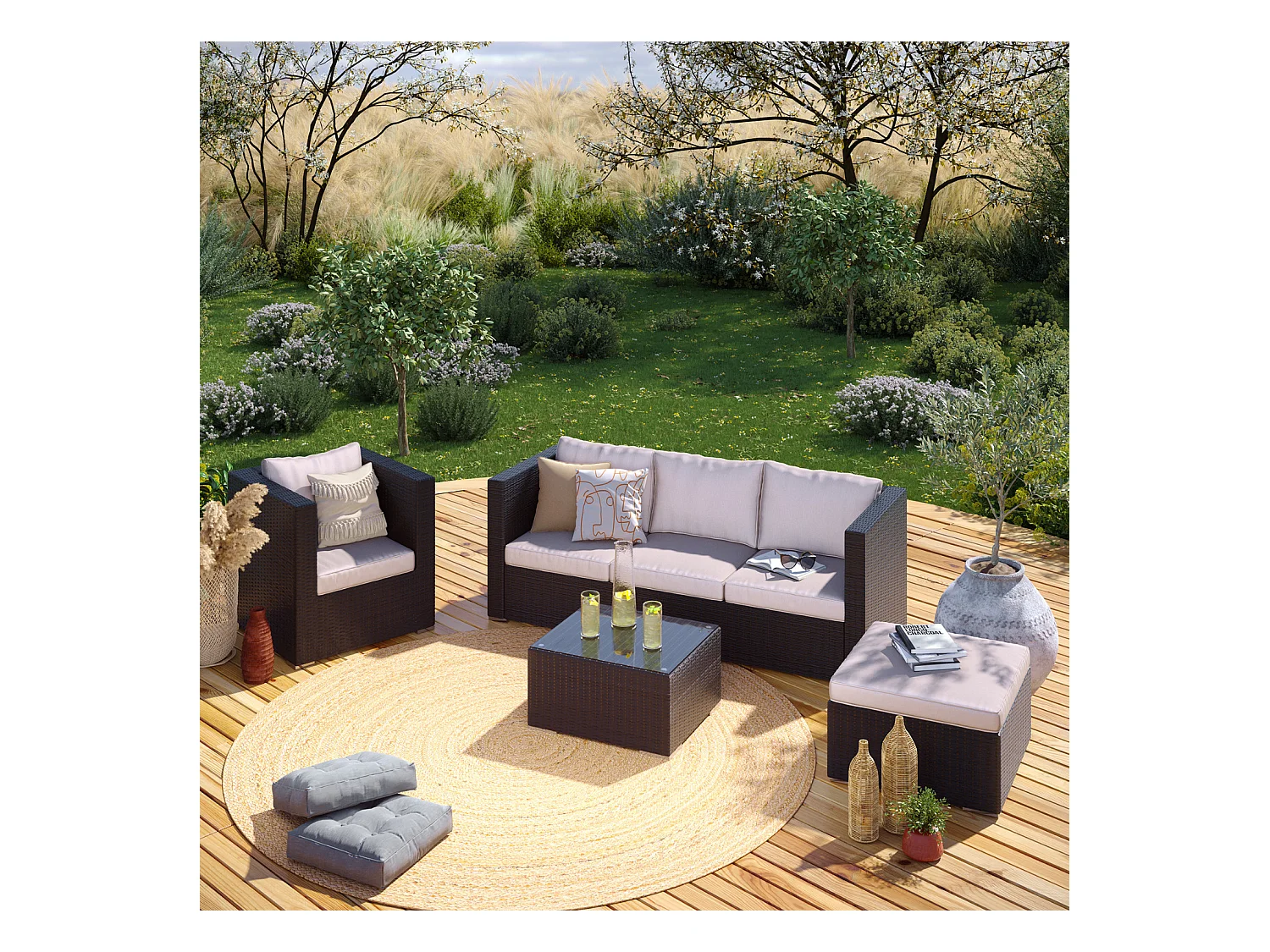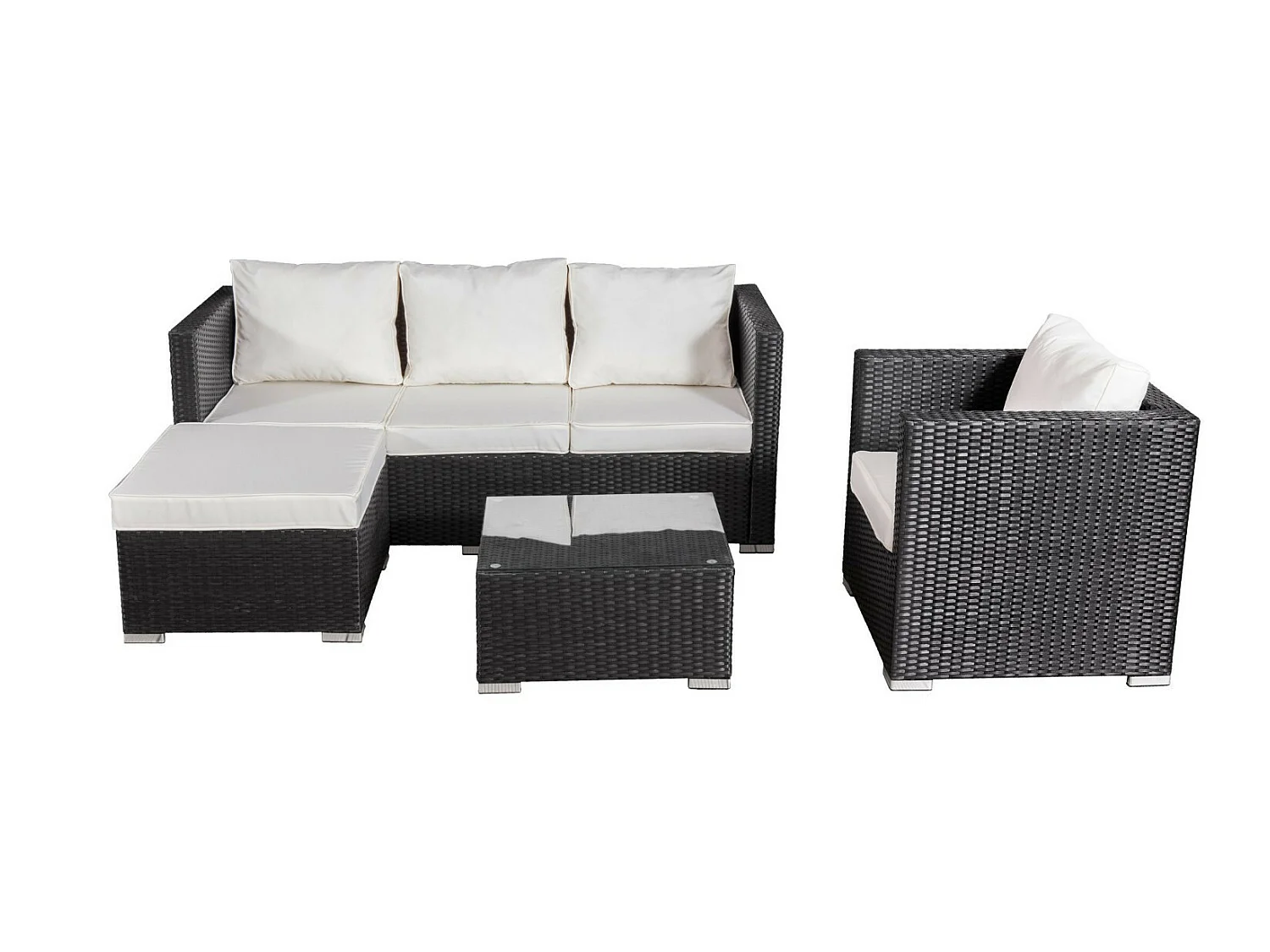 Salon de jardin résine tressée 5 places - Noir / Ecru - LUNGA 5