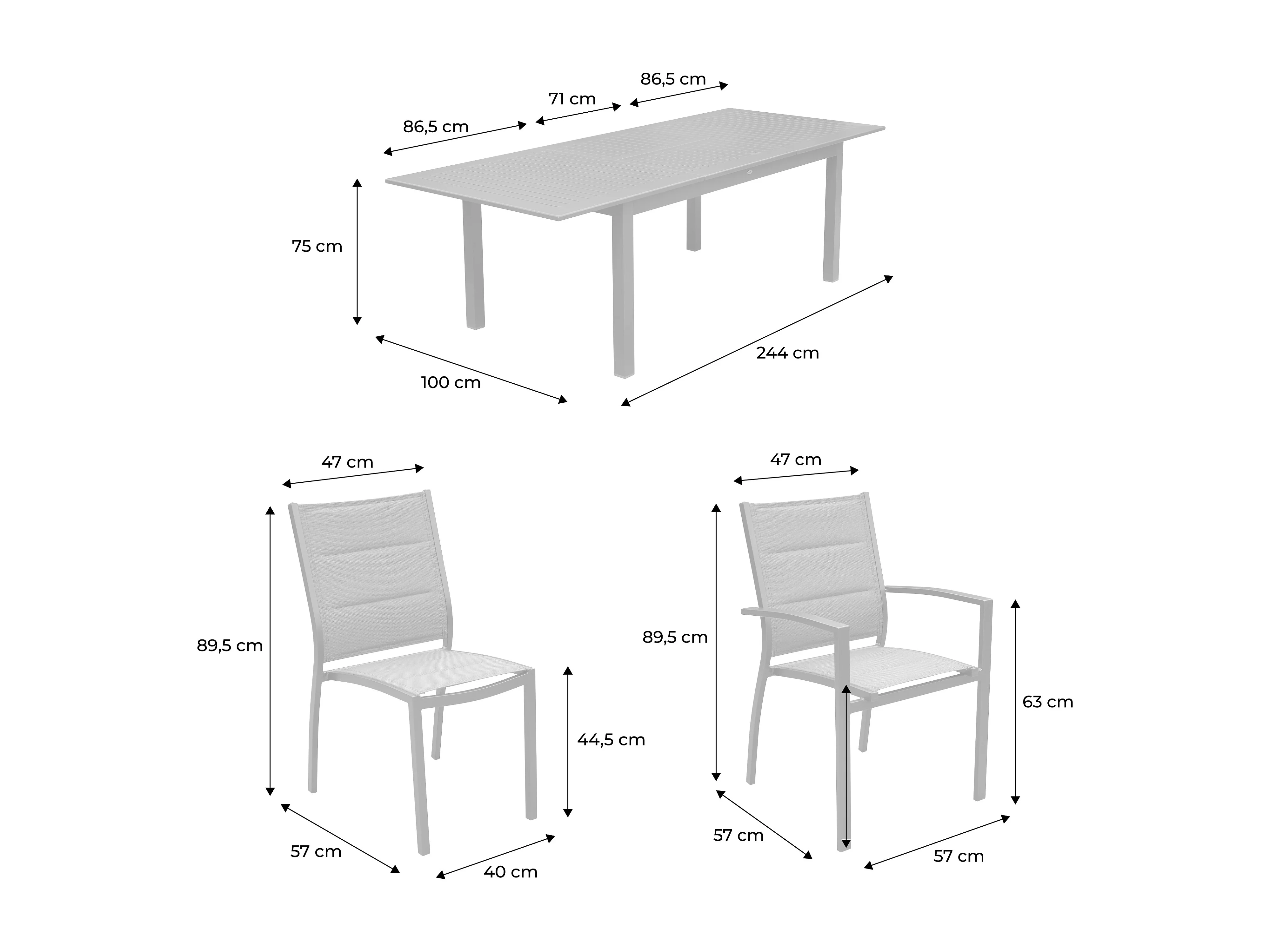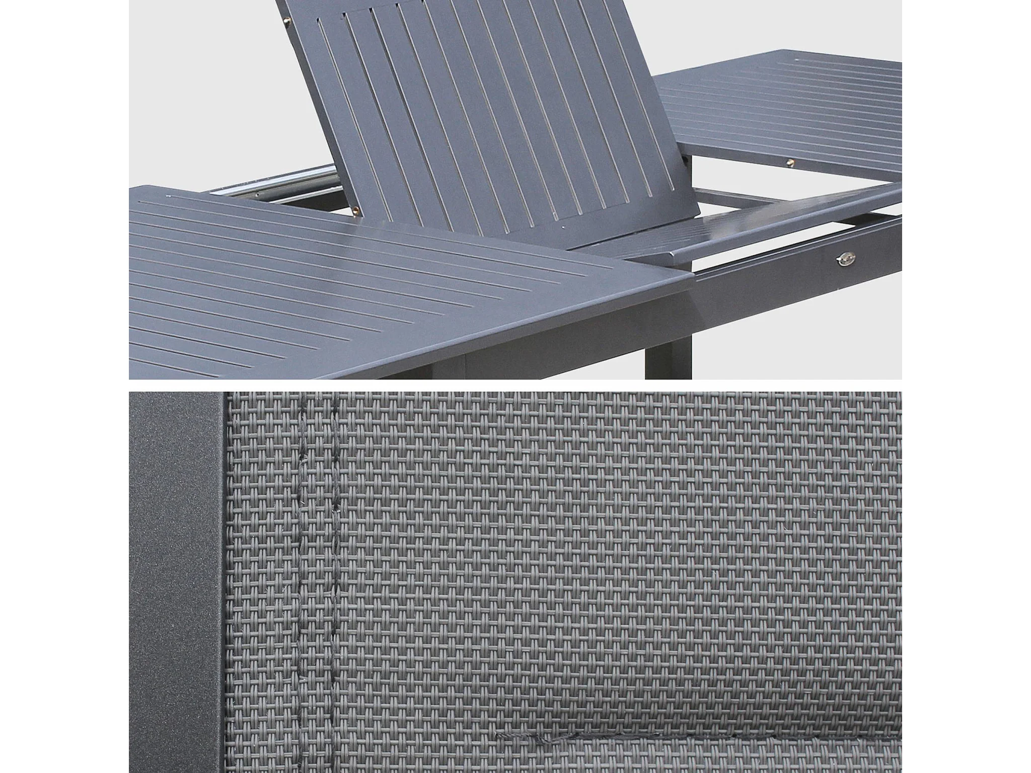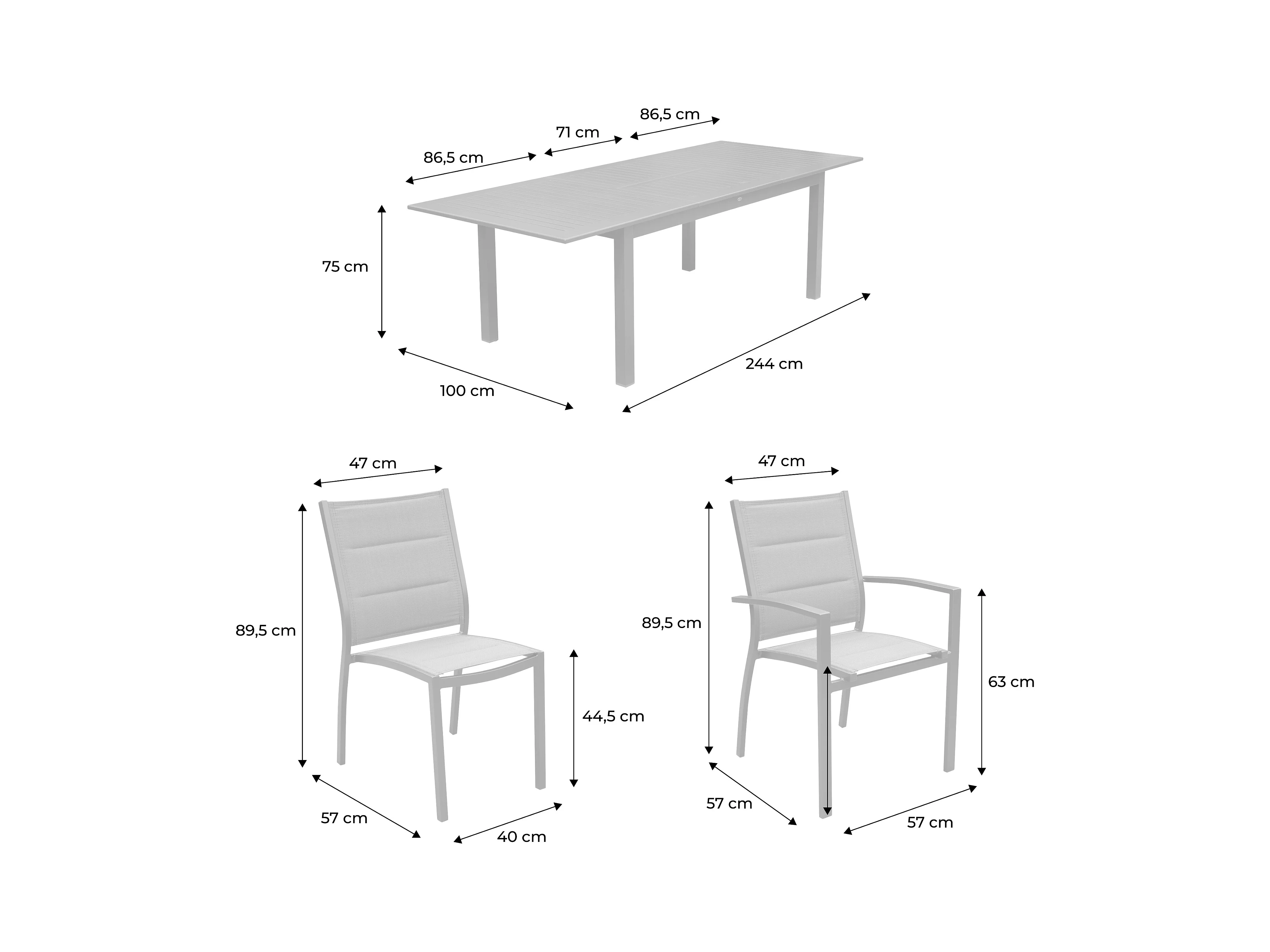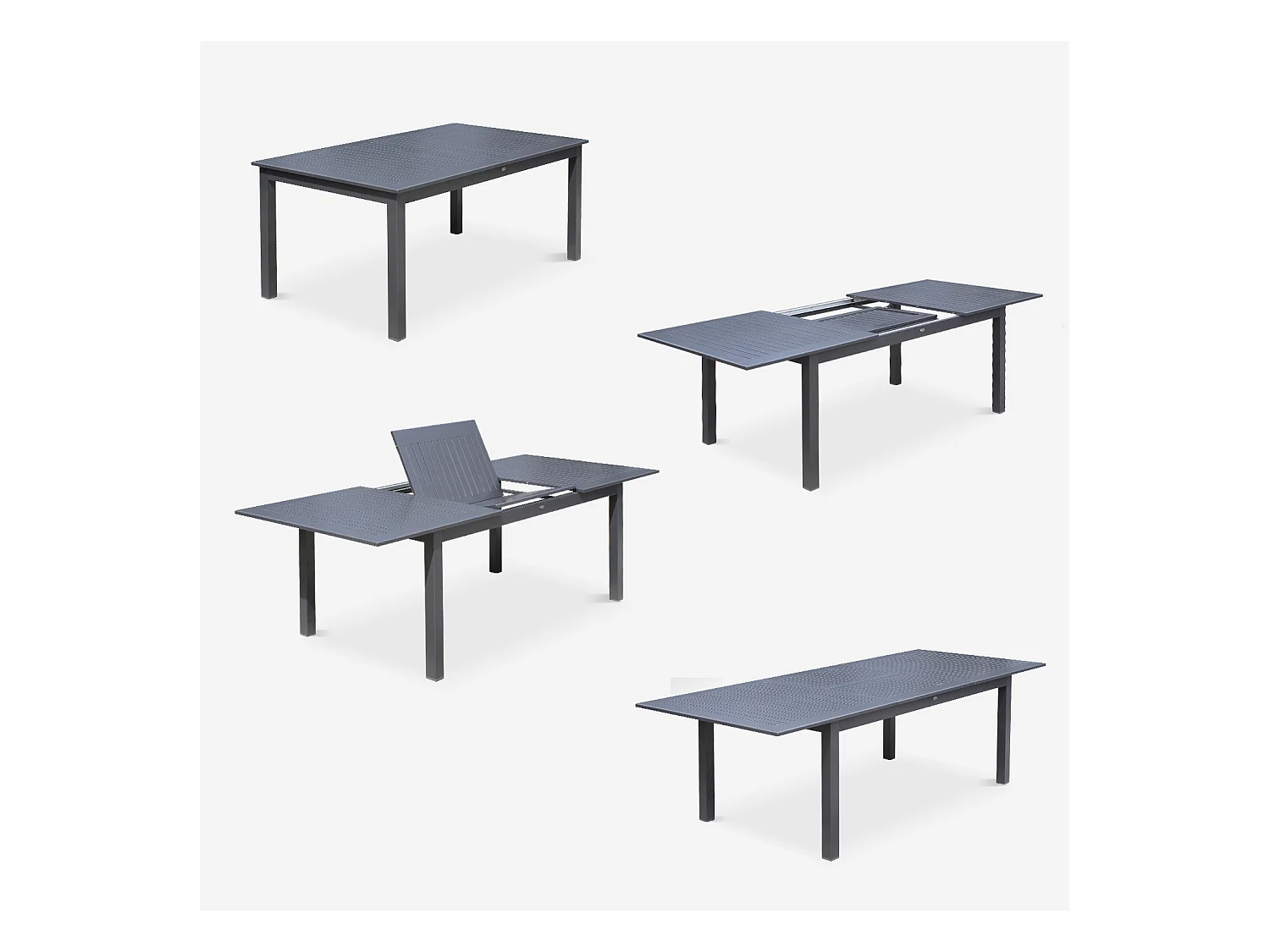 Table de jardin extensible aluminium + 8 assises - Chicago Anthracite/Gris taupe - Table en aluminium 175/245cm avec rallonge et 8 assises en textilène