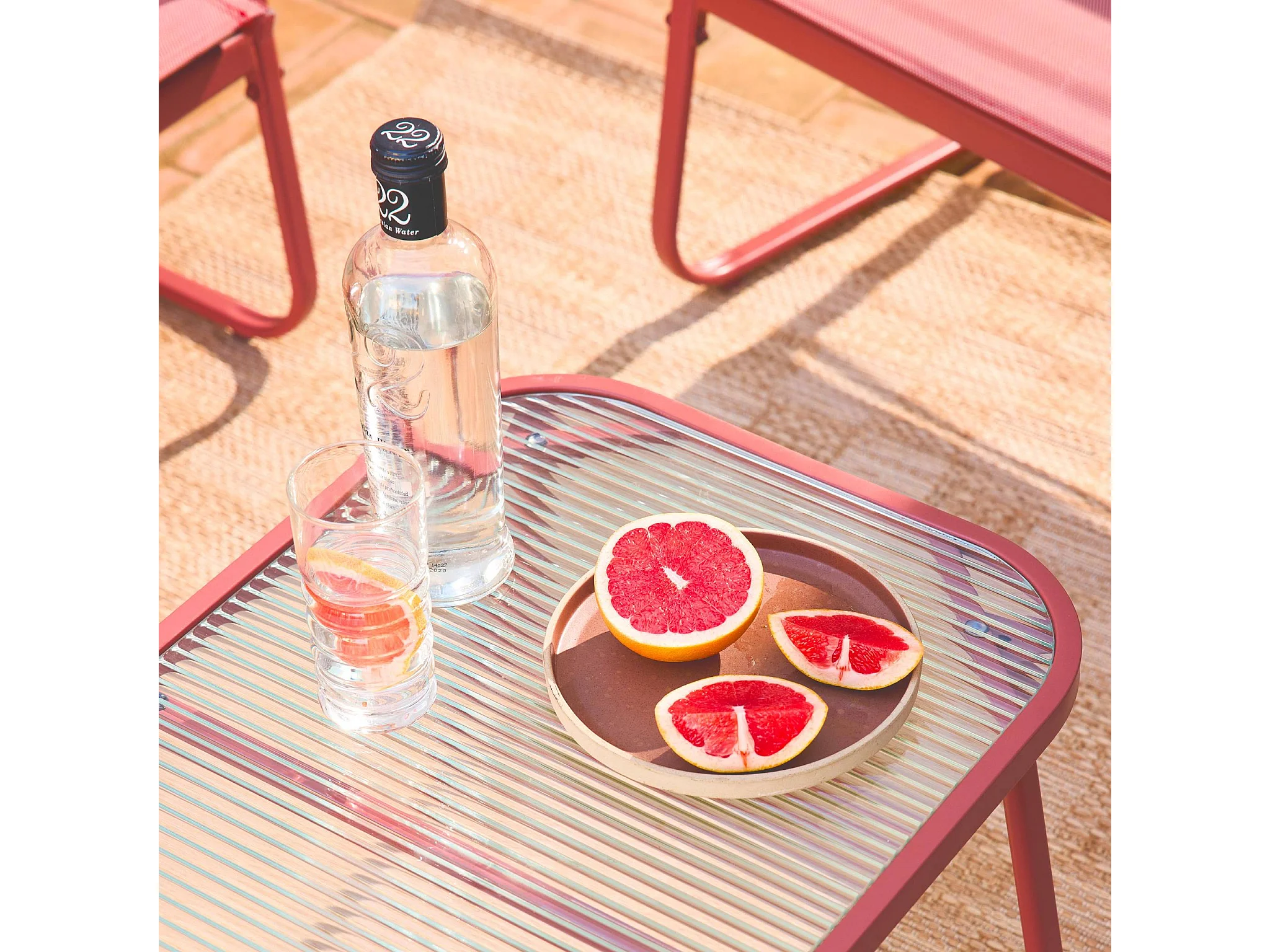 Salon de jardin en métal : un banc, 2 fauteuils bas et une table basse - Terracotta - MIRMANDE de MYLIA