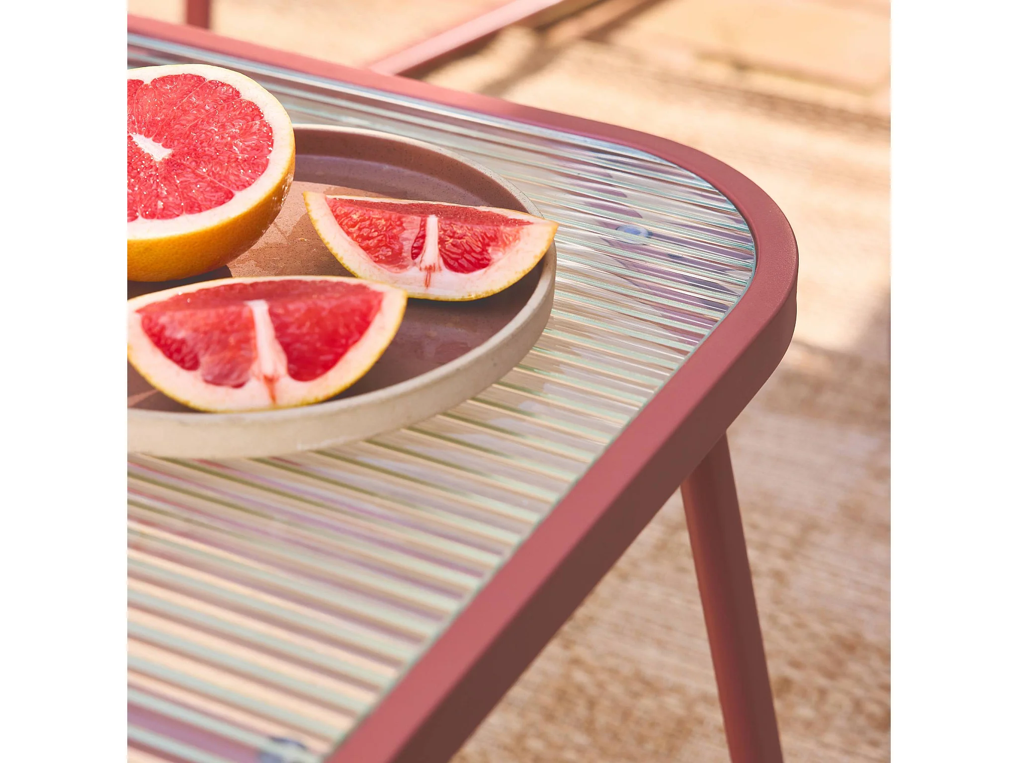 Salon de jardin acier SOFIA terracotta et beige. 4 places. table rectangulaire