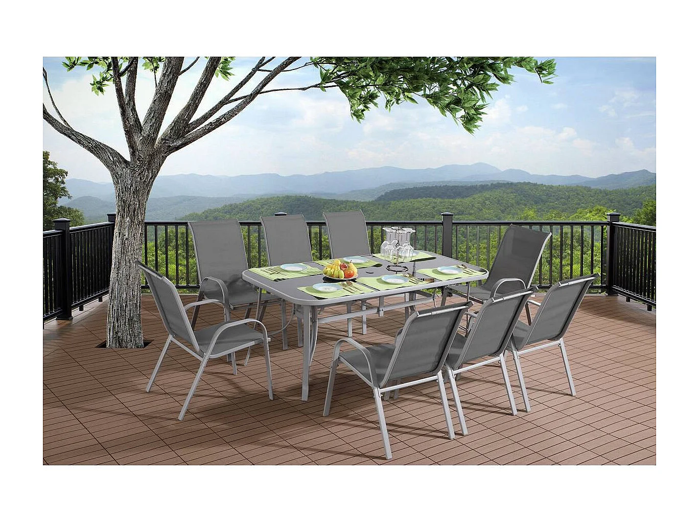 Salon de jardin textilène "cordoba + Porto" 8 personnes gris clair