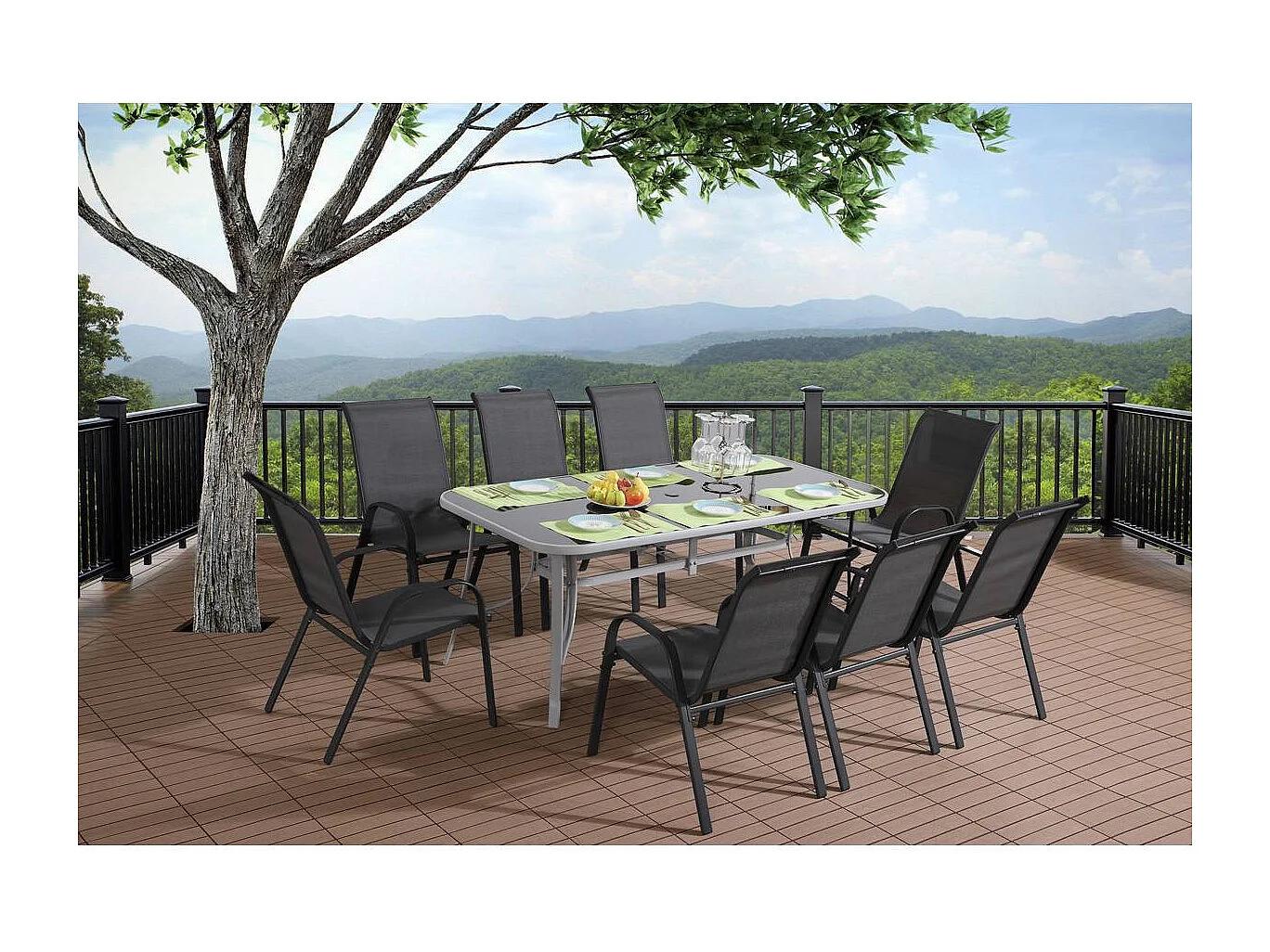 Salon de jardin textilène "cordoba + Porto" 8 personnes gris foncé