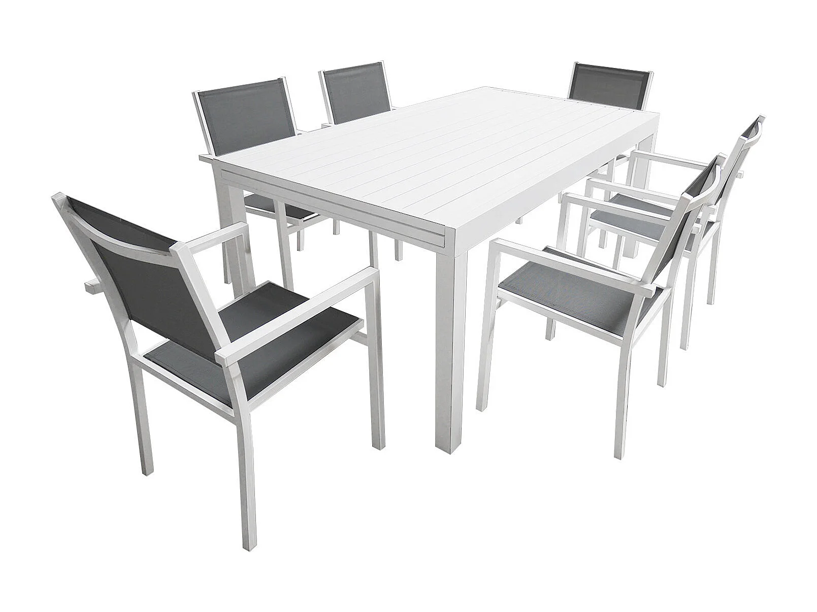 Salon de jardin extensible 10 places de 180/300cm en textilène gris - aluminium blanc VENEZIA - HAPPY GARDEN