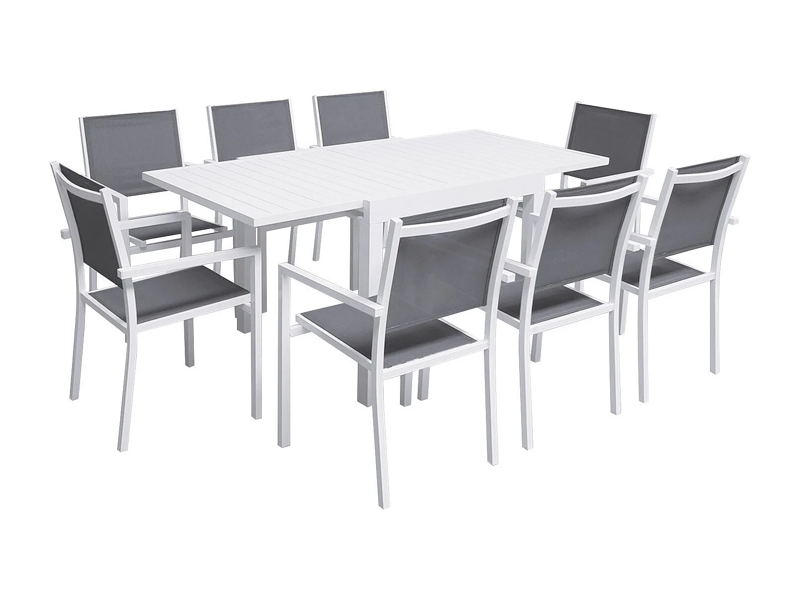 Salon de jardin VENEZIA extensible 90/180 en textilène gris 8 places - aluminium blanc