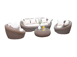 Salon de jardin en résine tressée marron : canapé, 2 fauteuils et table basse - WHITEHEAVEN de MYLIA