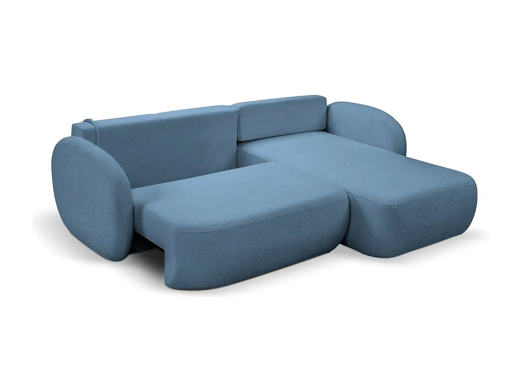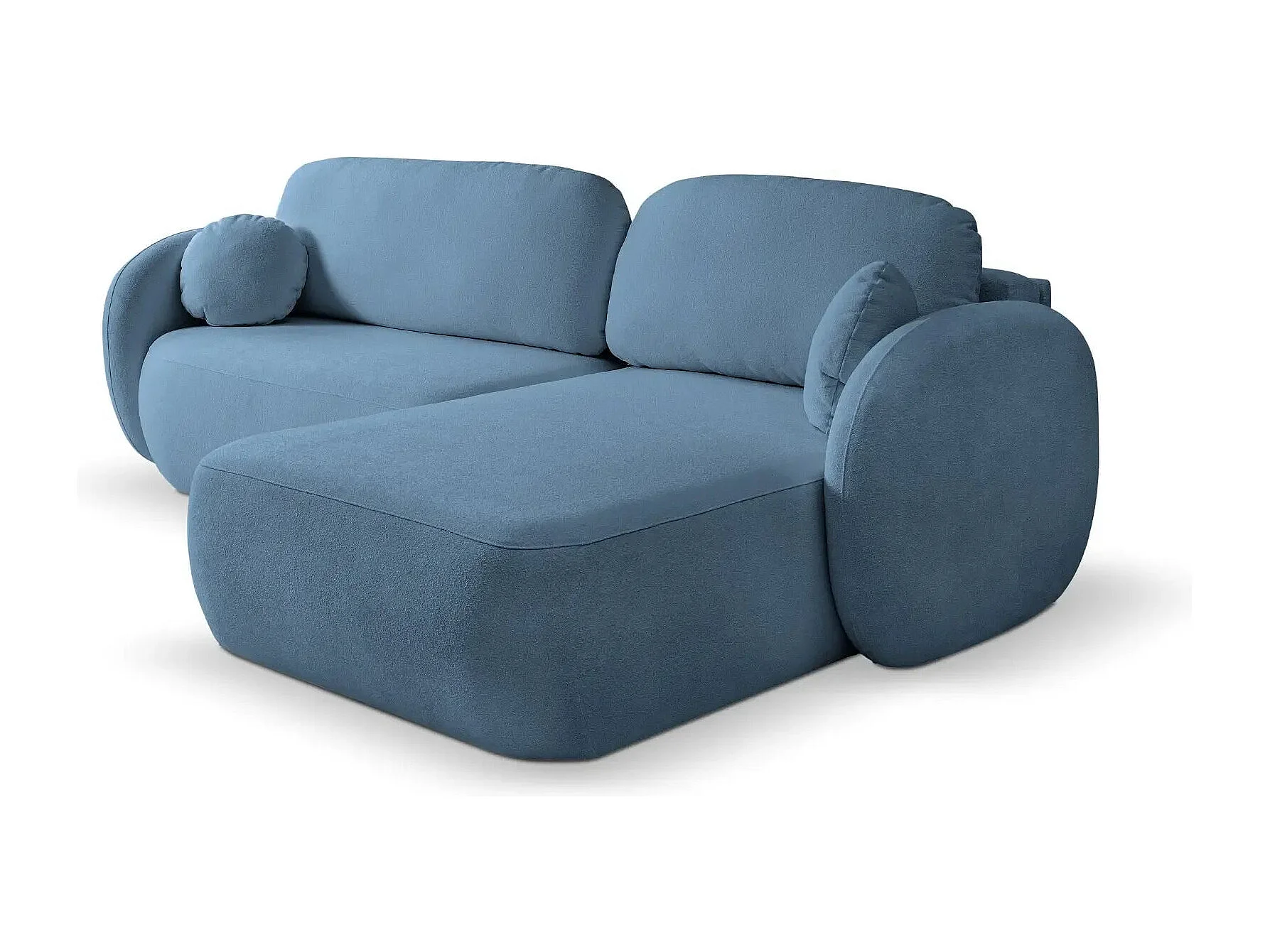 SANTIAGO - Canapé d'angle tissu bouclette - Bleu - Droit