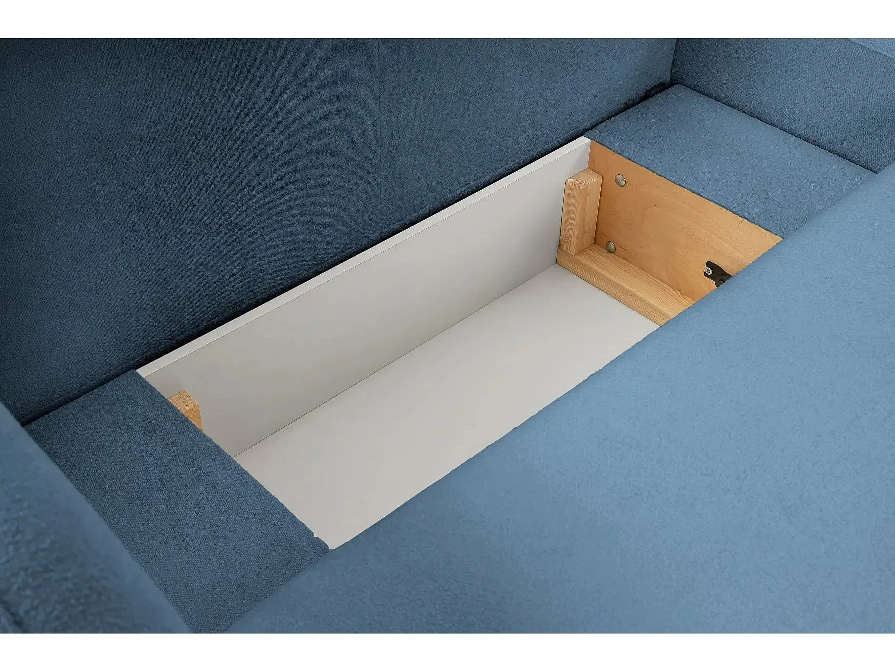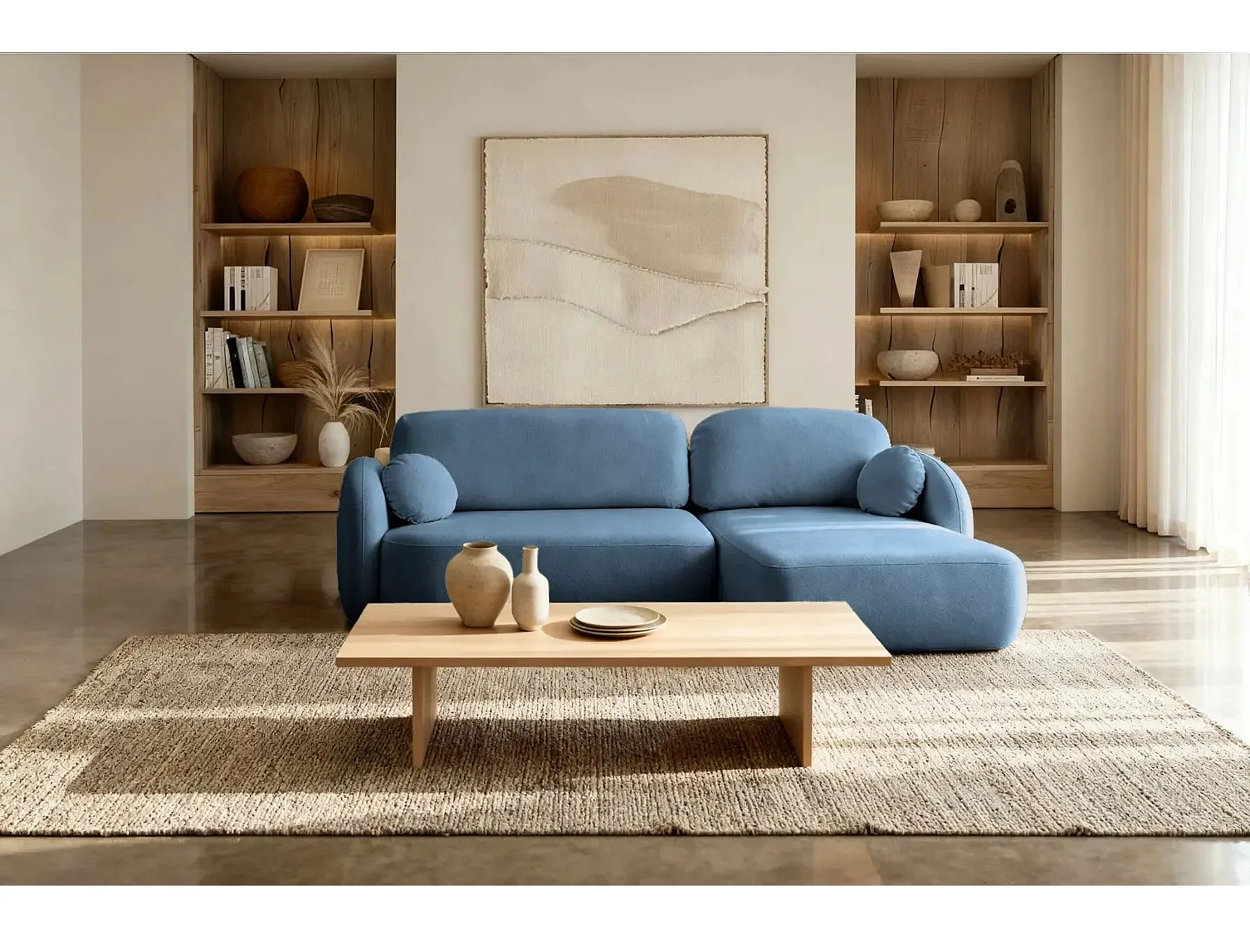SANTIAGO - Canapé d'angle tissu bouclette - Bleu - Gauche