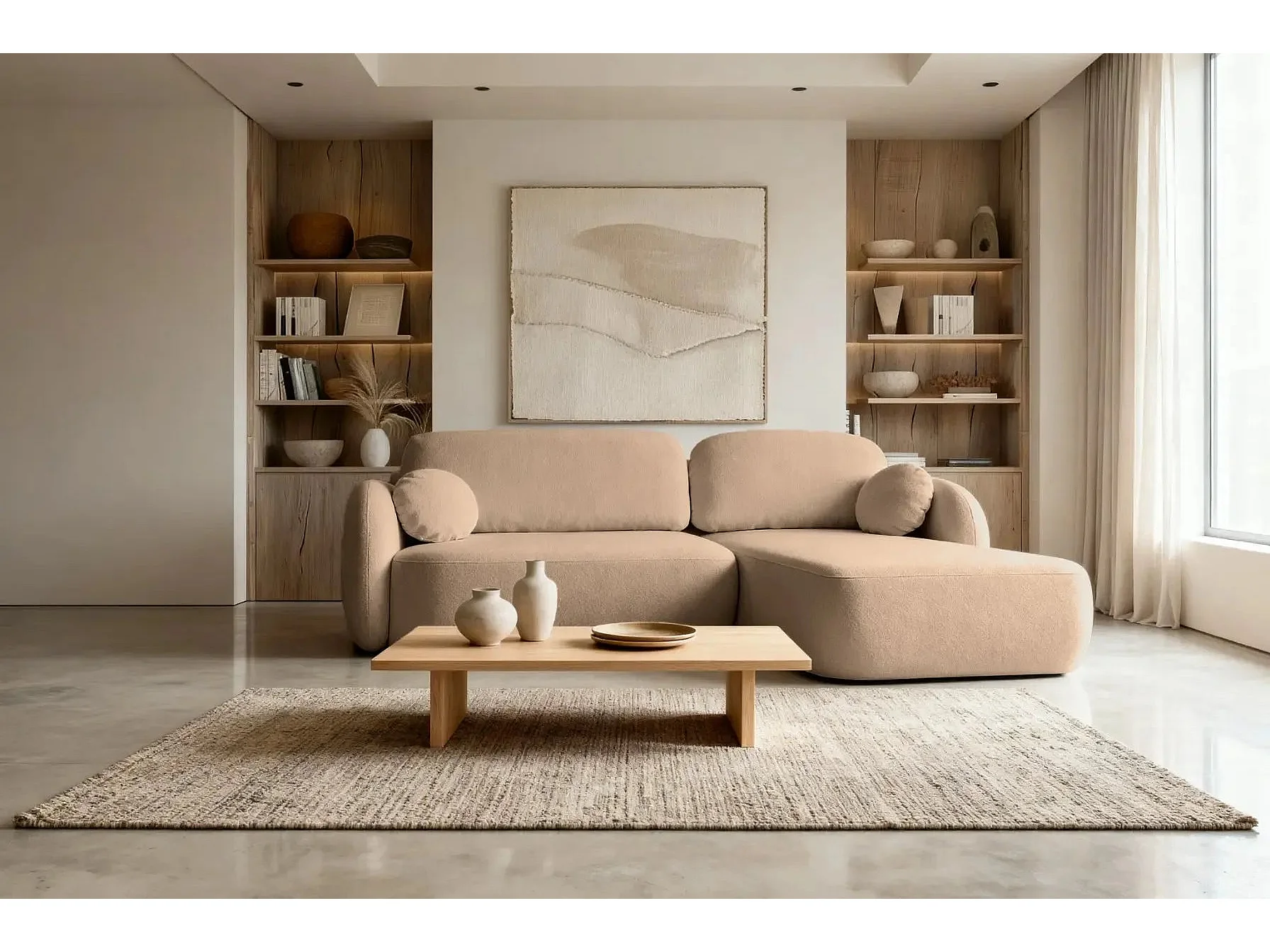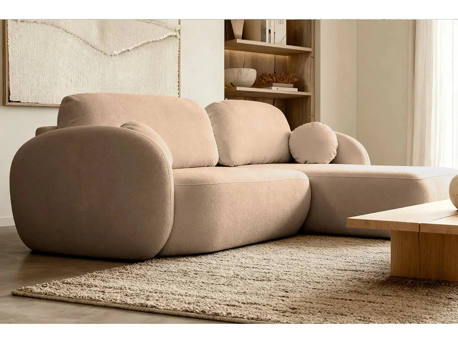 SANTIAGO - Canapé d'angle tissu bouclette - Café - Gauche
