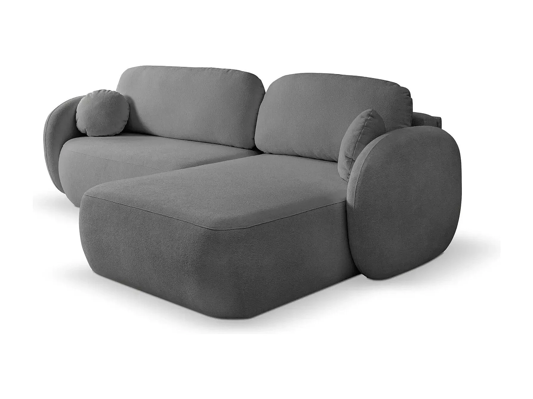 SANTIAGO - Canapé d'angle tissu bouclette - Gris Foncé - Gauche