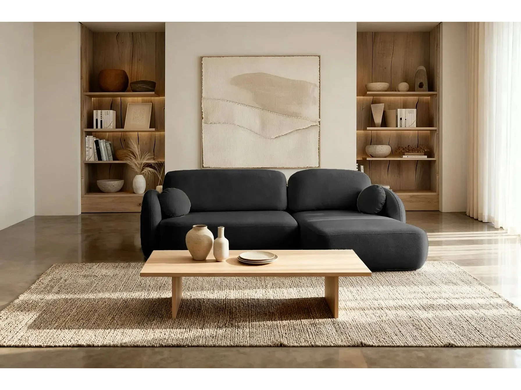 SANTIAGO - Canapé d'angle tissu bouclette 4 places - Noir - Gauche