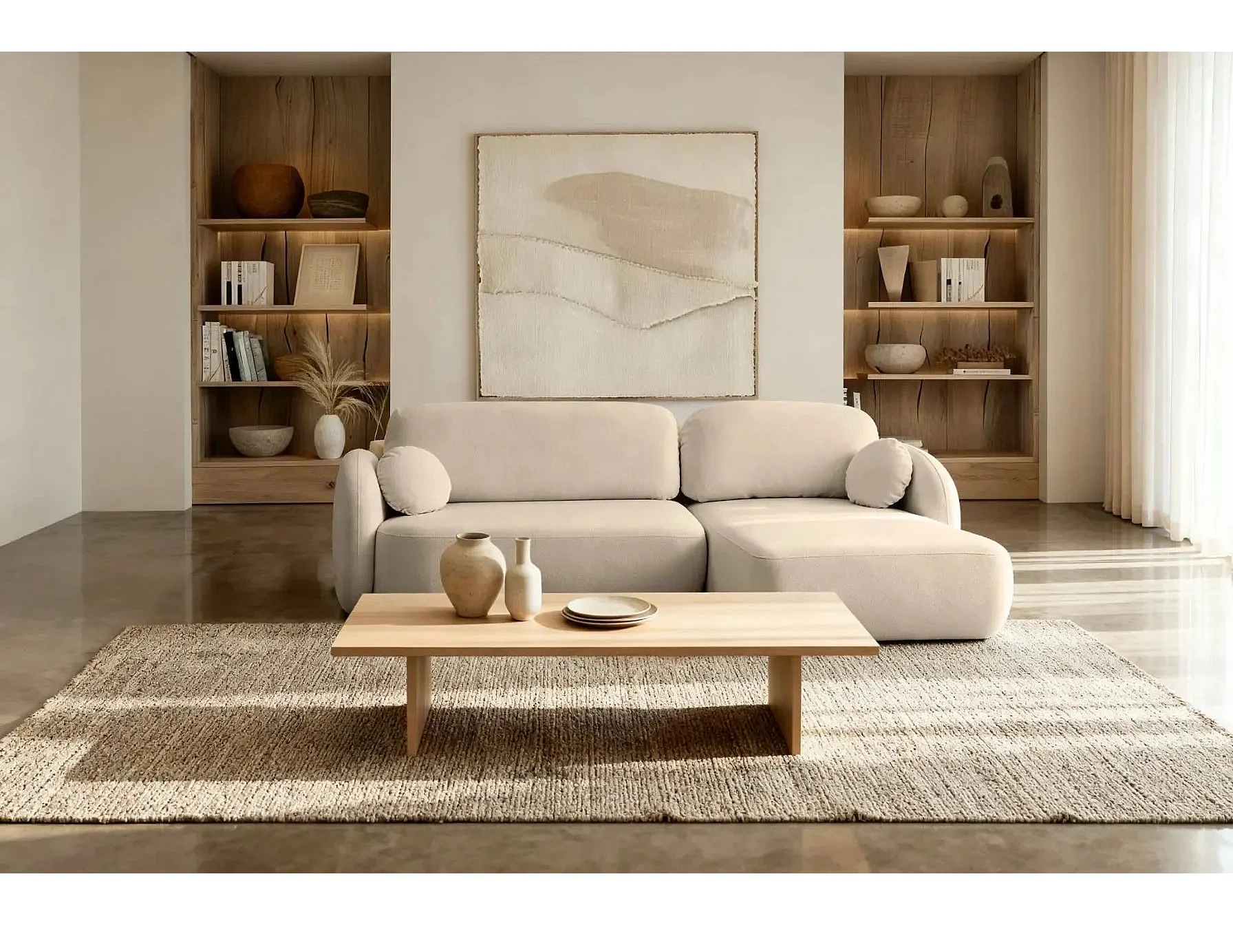 SANTIAGO - Canapé d'angle tissu bouclette - Taupe - Droit