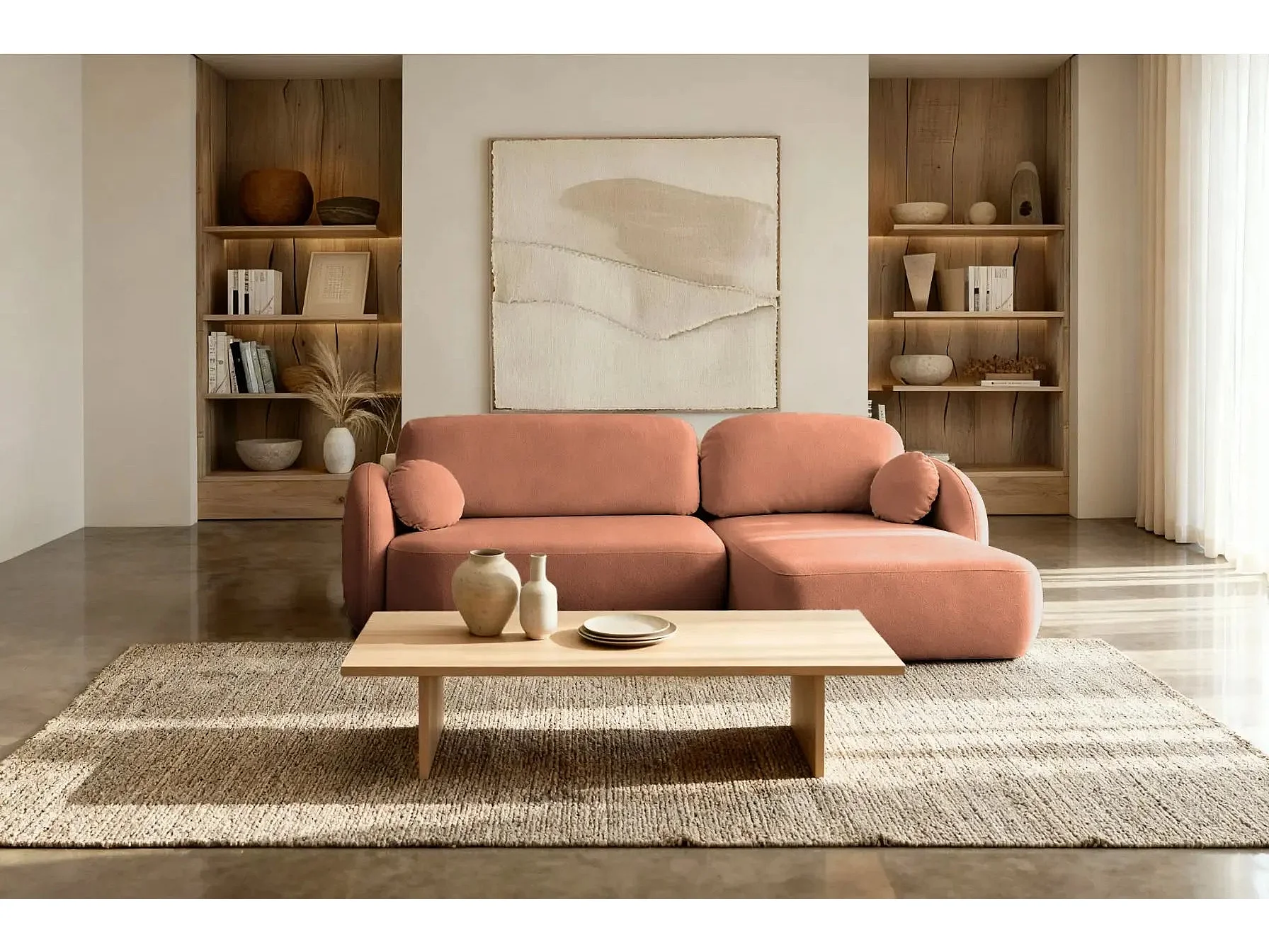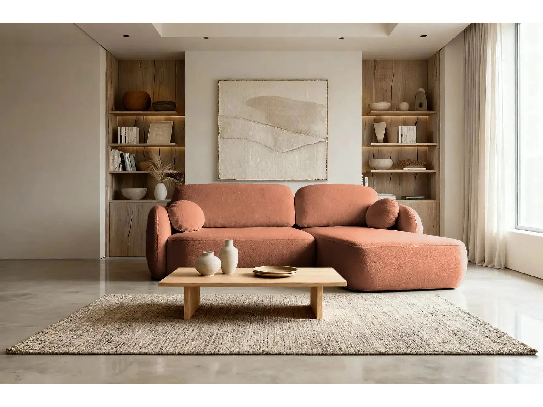 SANTIAGO - Canapé d'angle tissu bouclette - Terracotta - Gauche