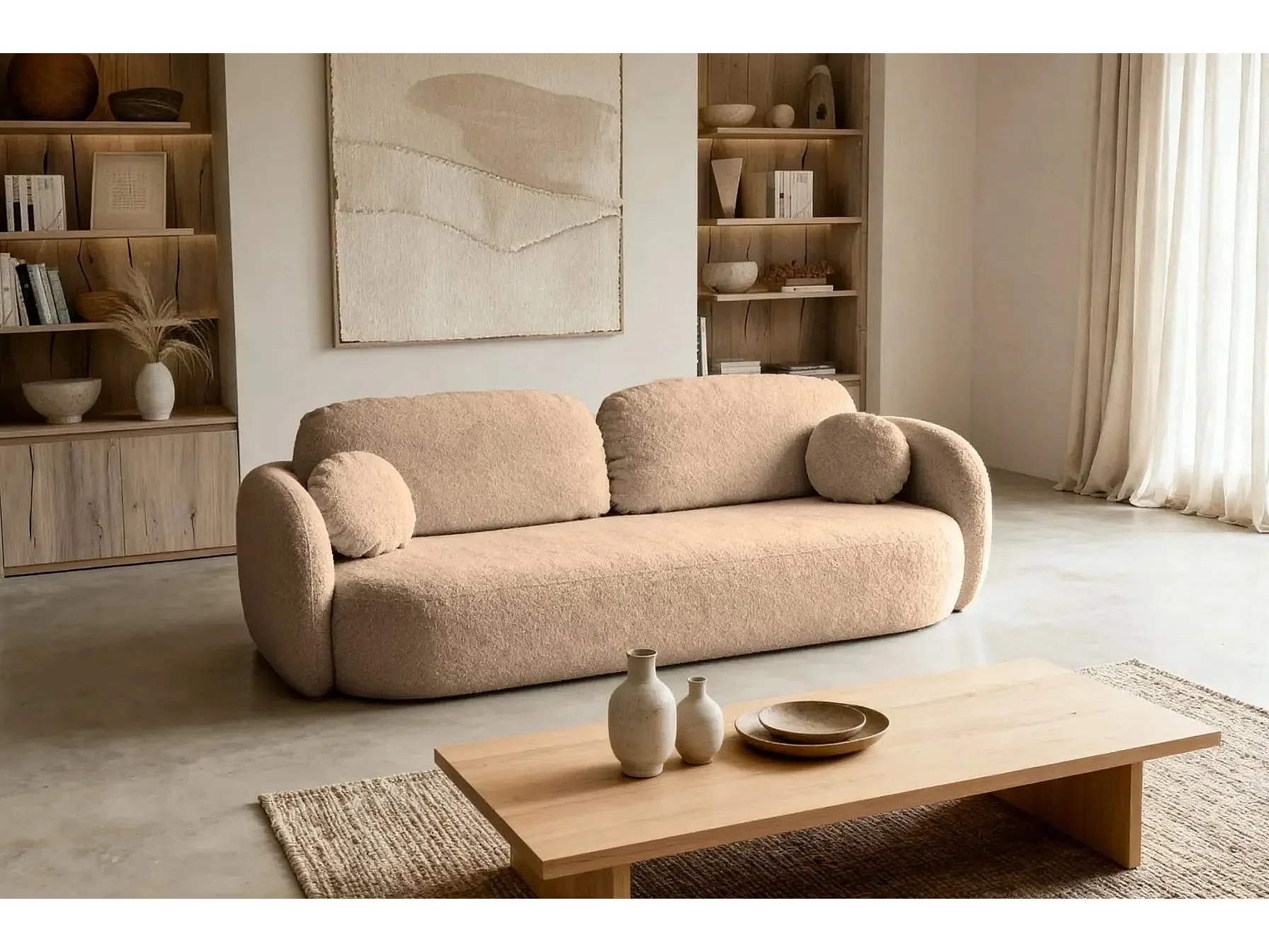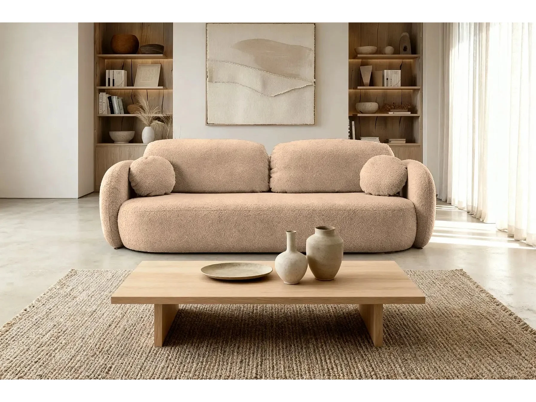 SANTIAGO - Canapé droit tissu bouclette - Café