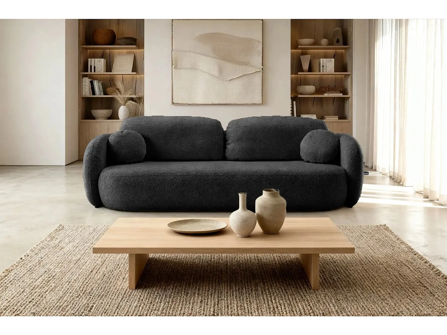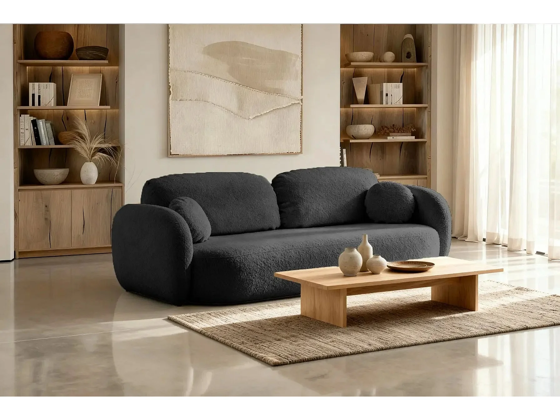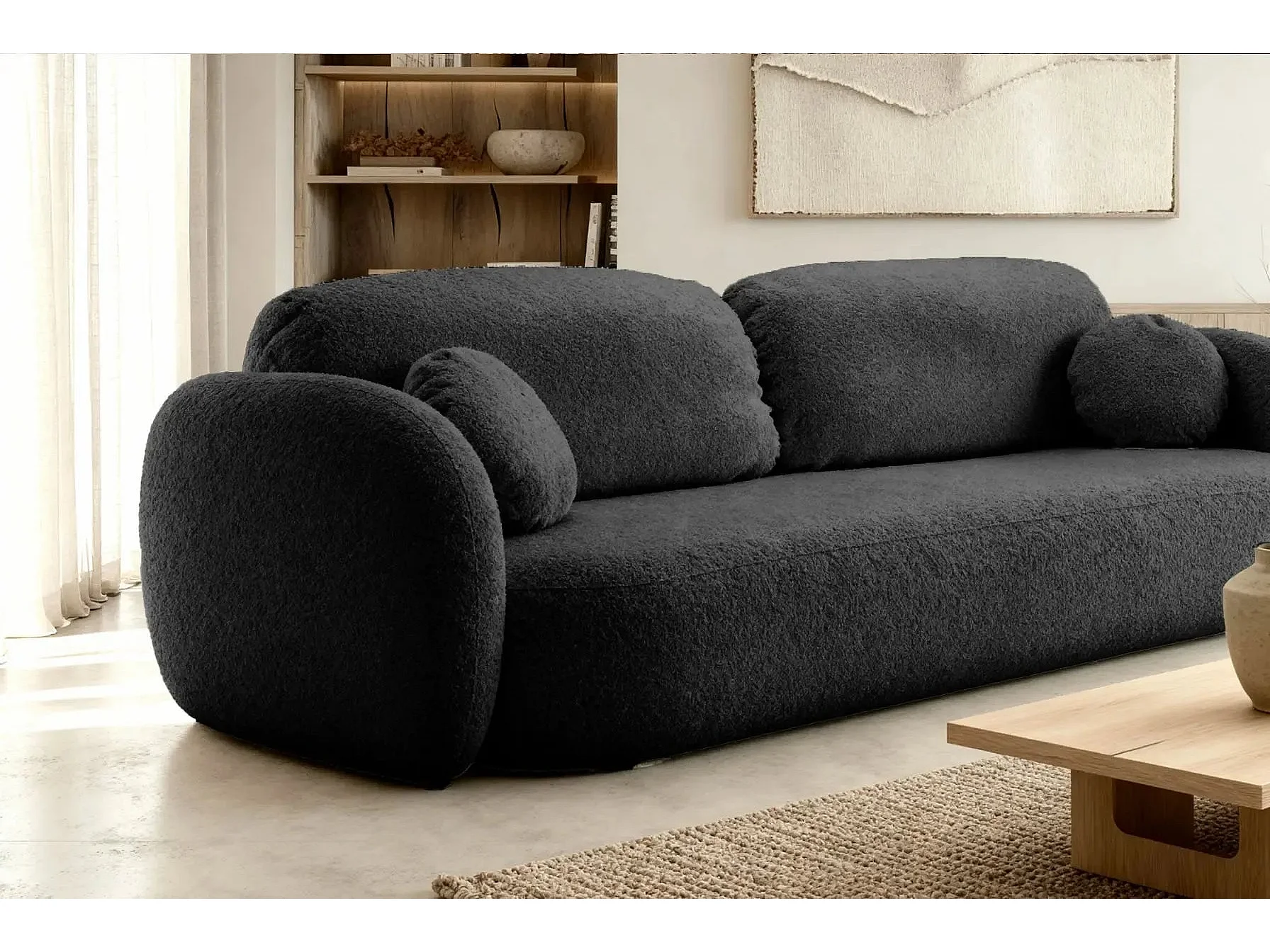 SANTIAGO - Canapé droit tissu bouclette 3 places - Noir
