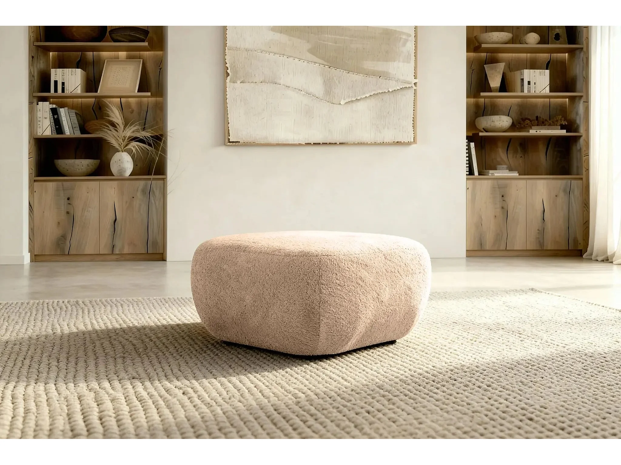 SANTIAGO - Pouf tissu bouclette - Café