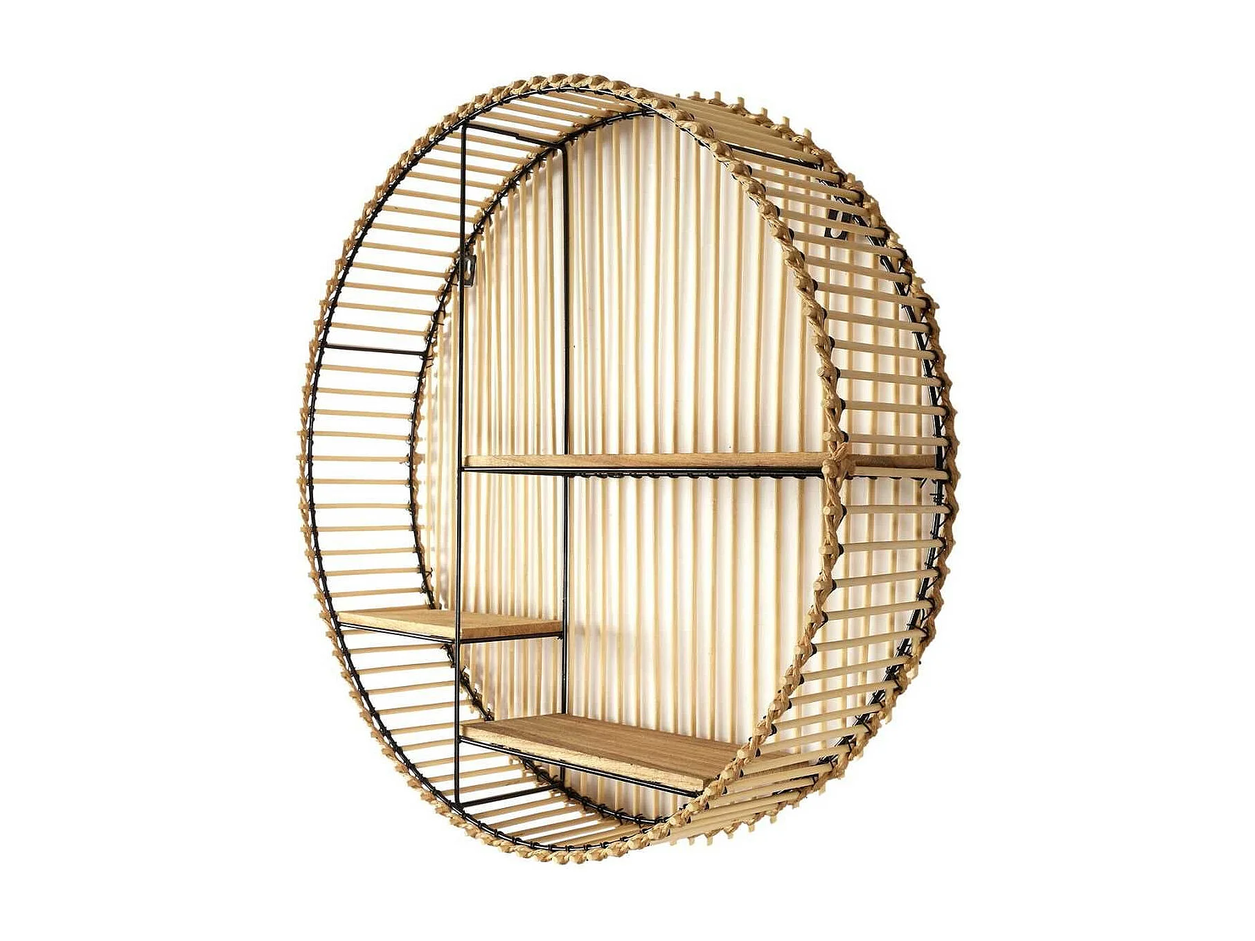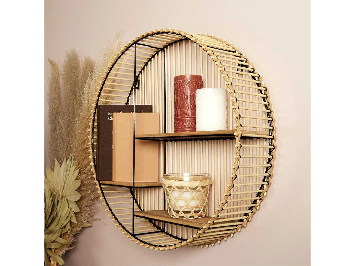 Etagère murale ronde en bambou et métal plateau bois - SAPHIR