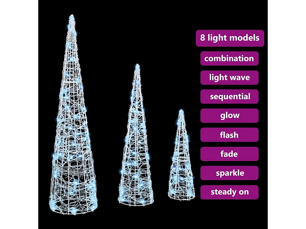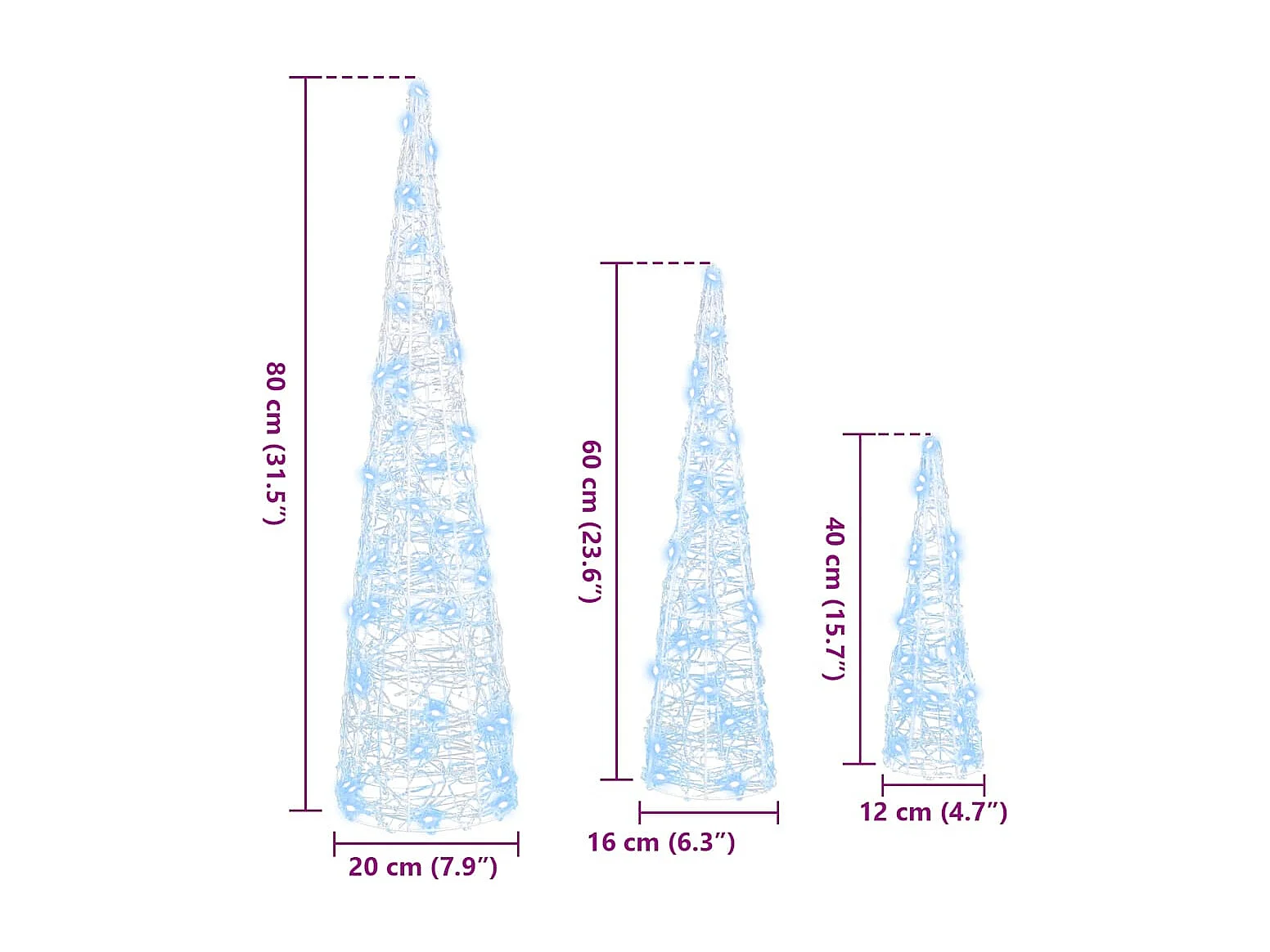 Sapin de Noël 3 pcs Blanc froid 20 x 20 x 80 cm Acrylique