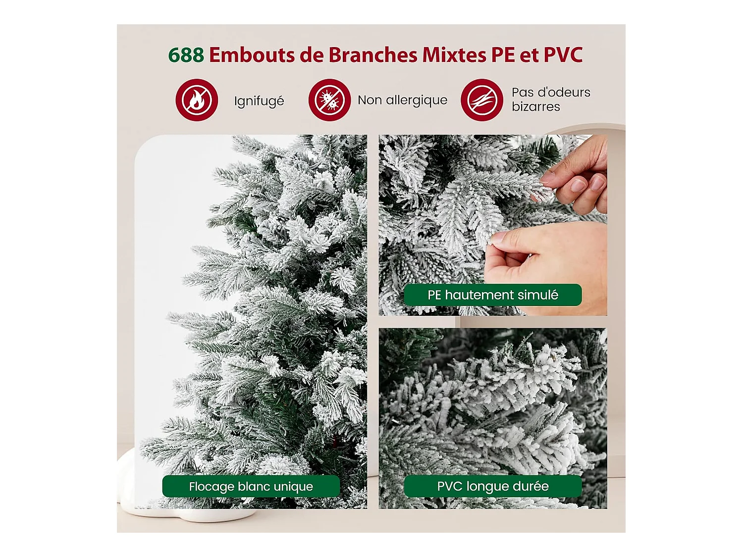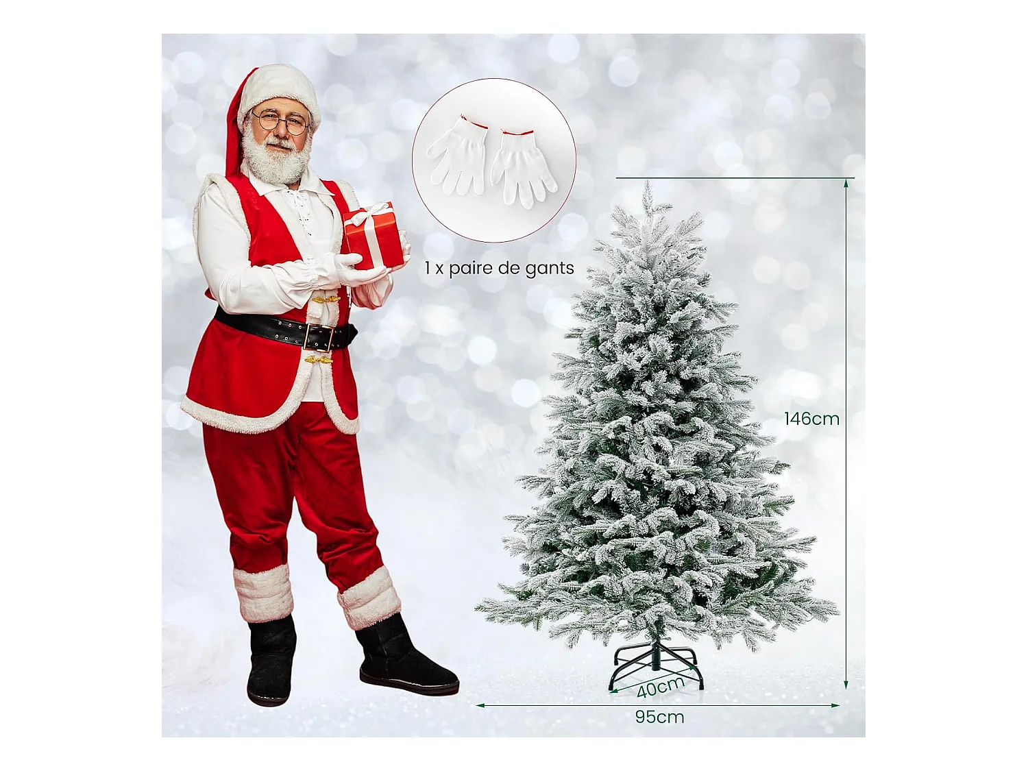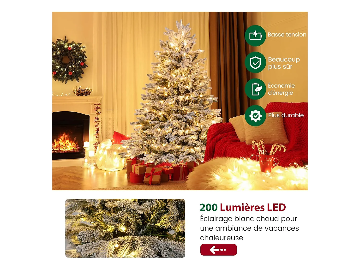 Sapin de noël artificiel 146 cm, charnières avec 688 branches & 200 lumières led,