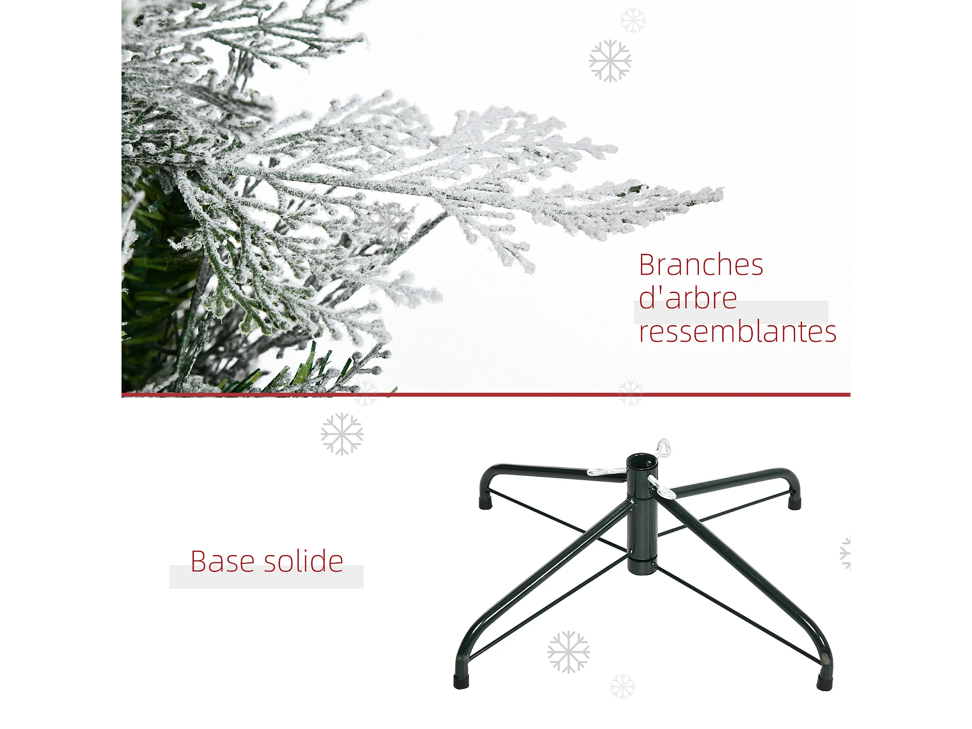 Sapin de Noël artificiel aspect enneigé Ø 80 x 225H cm pied support inclus 880 branches épines grand réalisme
