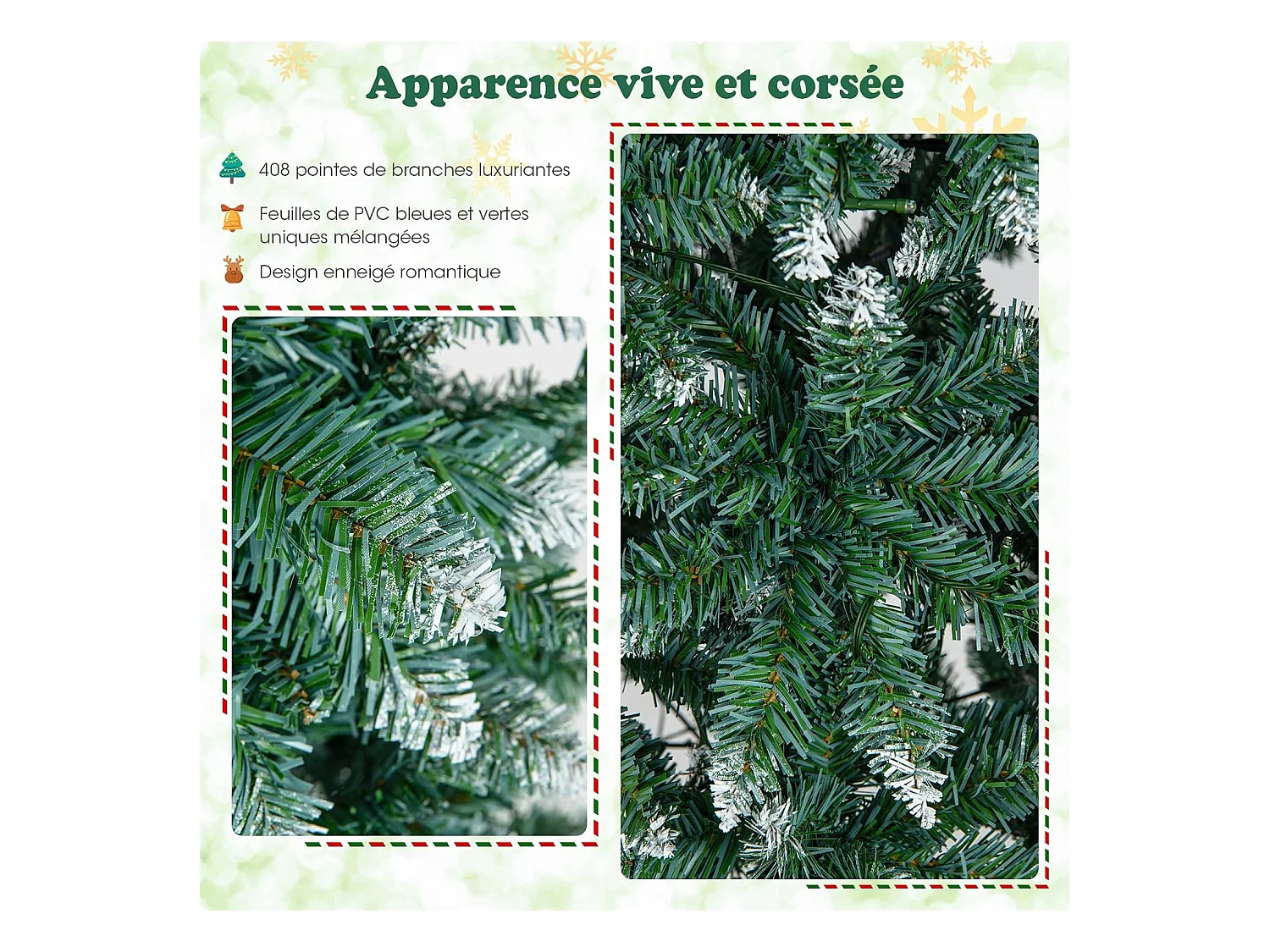 Sapin de noël artificiel de 150 cm, 408 branches enneigées, 200 lumières led blanc chaud