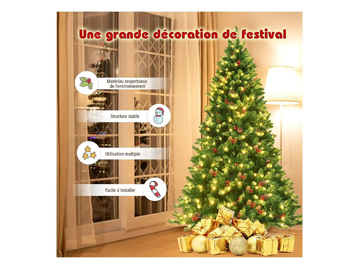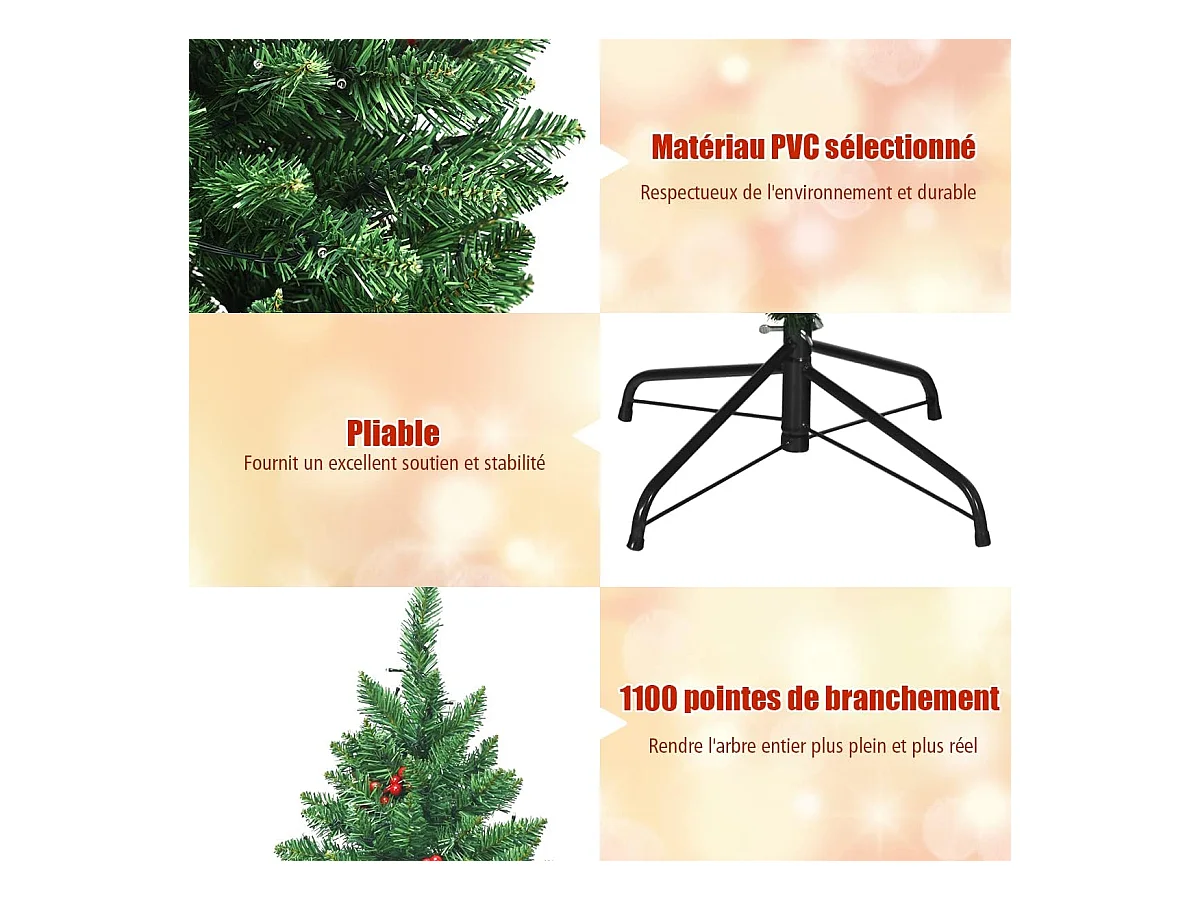 Sapin de Noël artificiel Vert avec Pommes de pin et Baies rouges H 210 cm