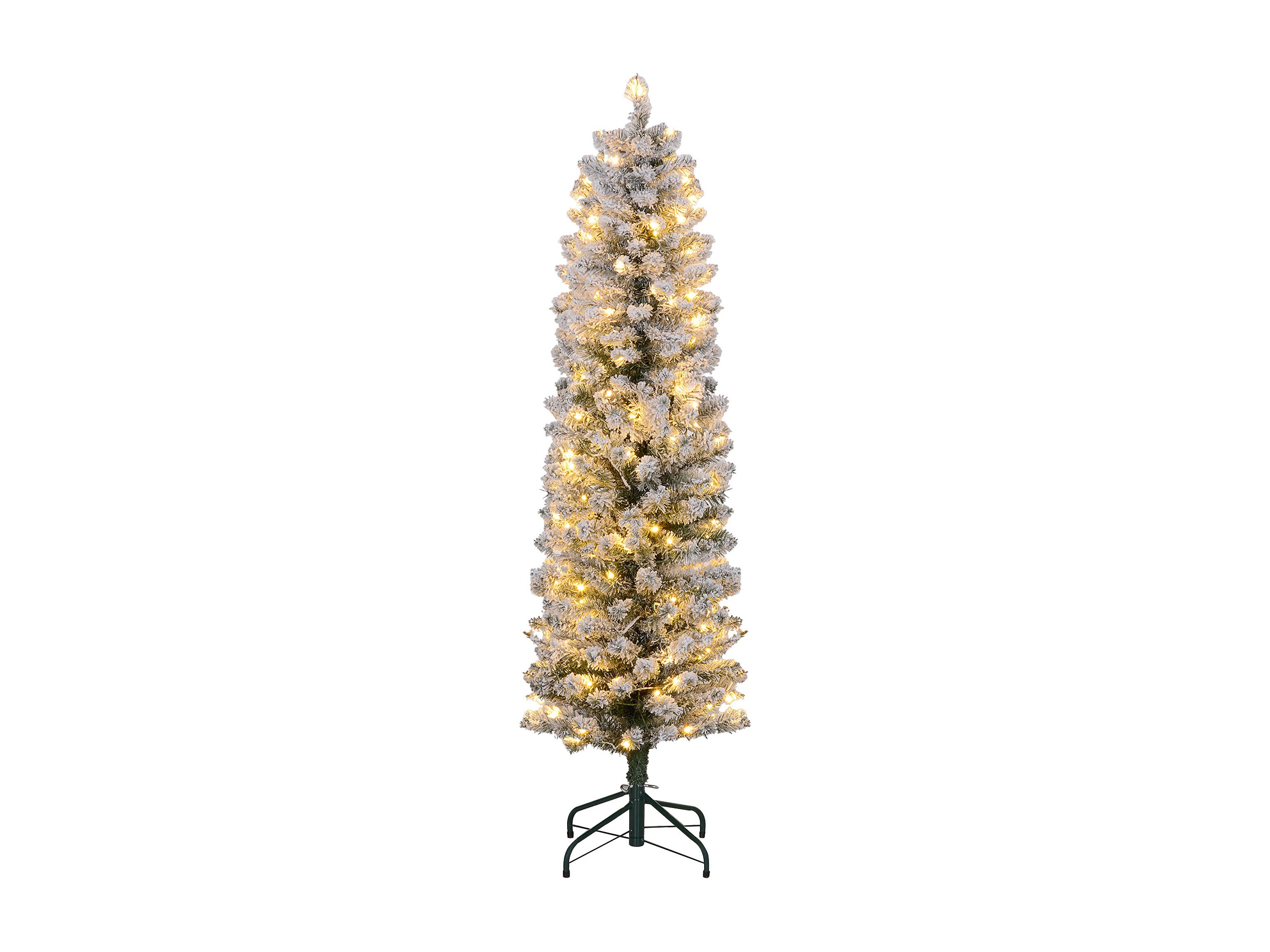 Sapin de Noël artificiel LED H.150 cm - sapin de Noël mince enneigé - 263 branches 120 LED blanc chaud