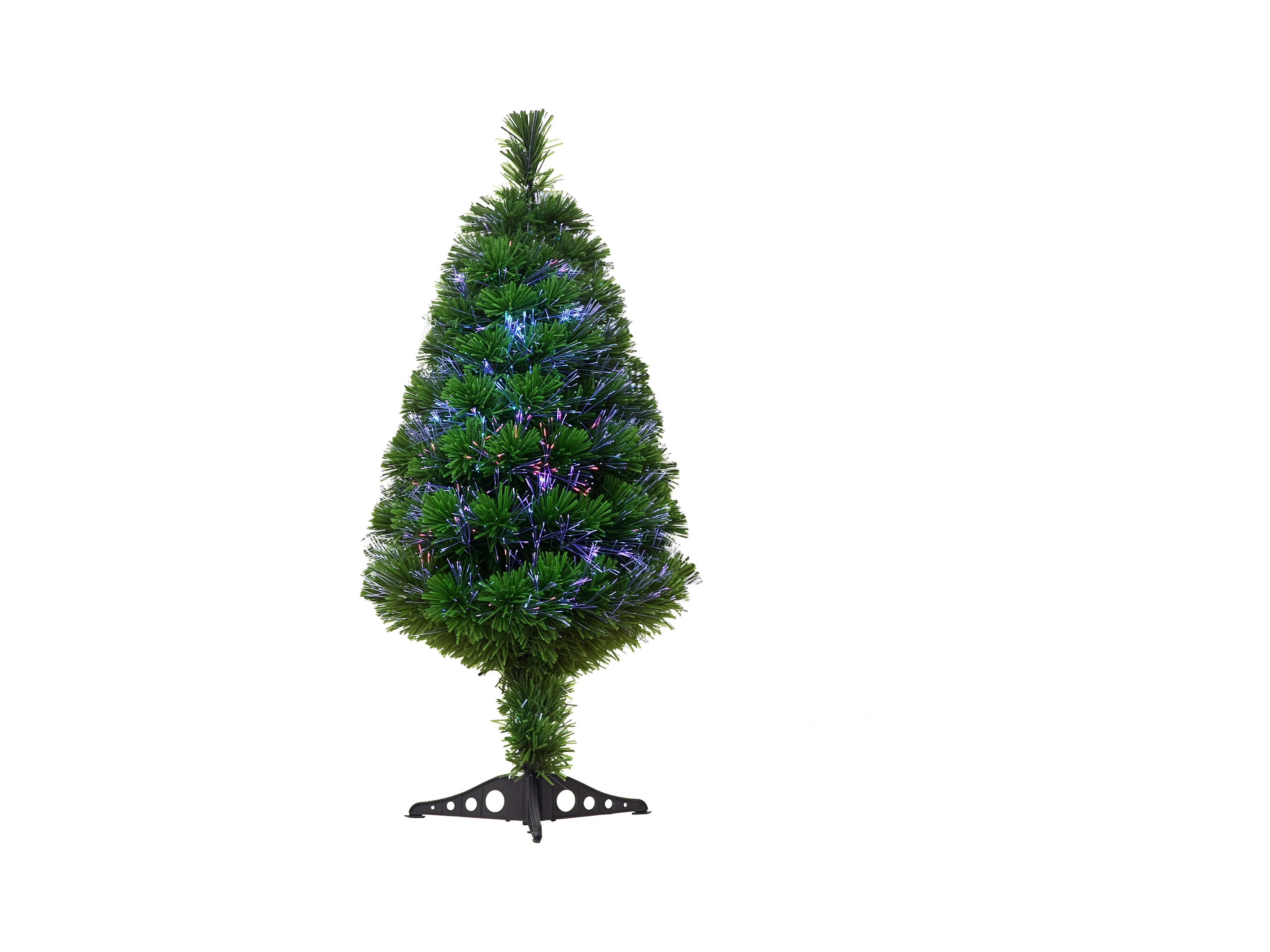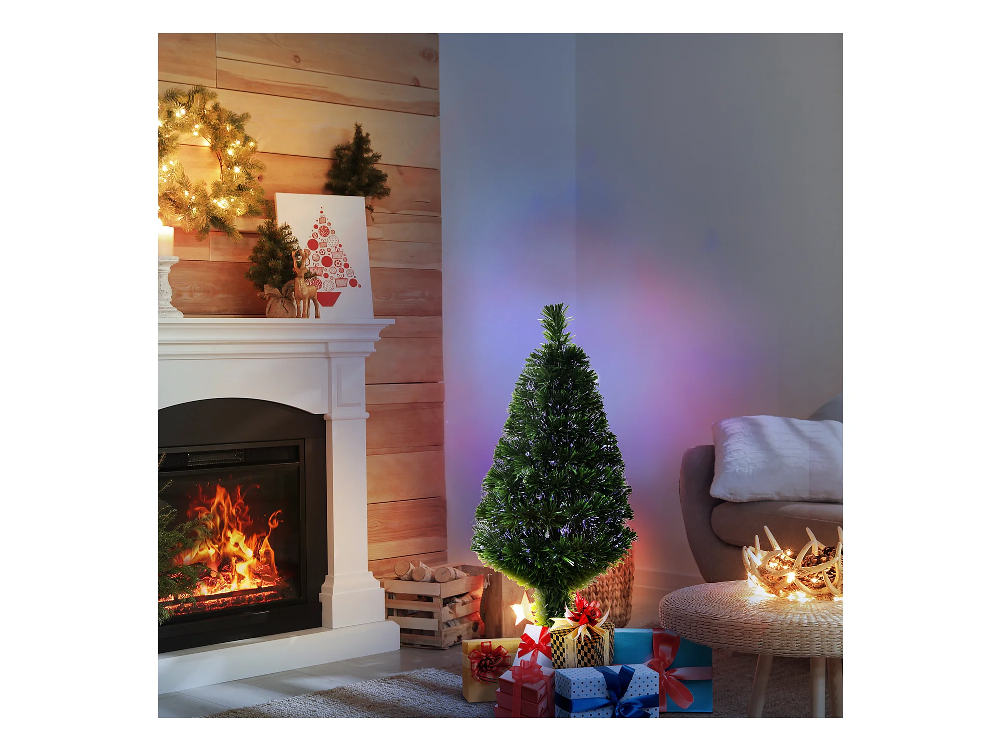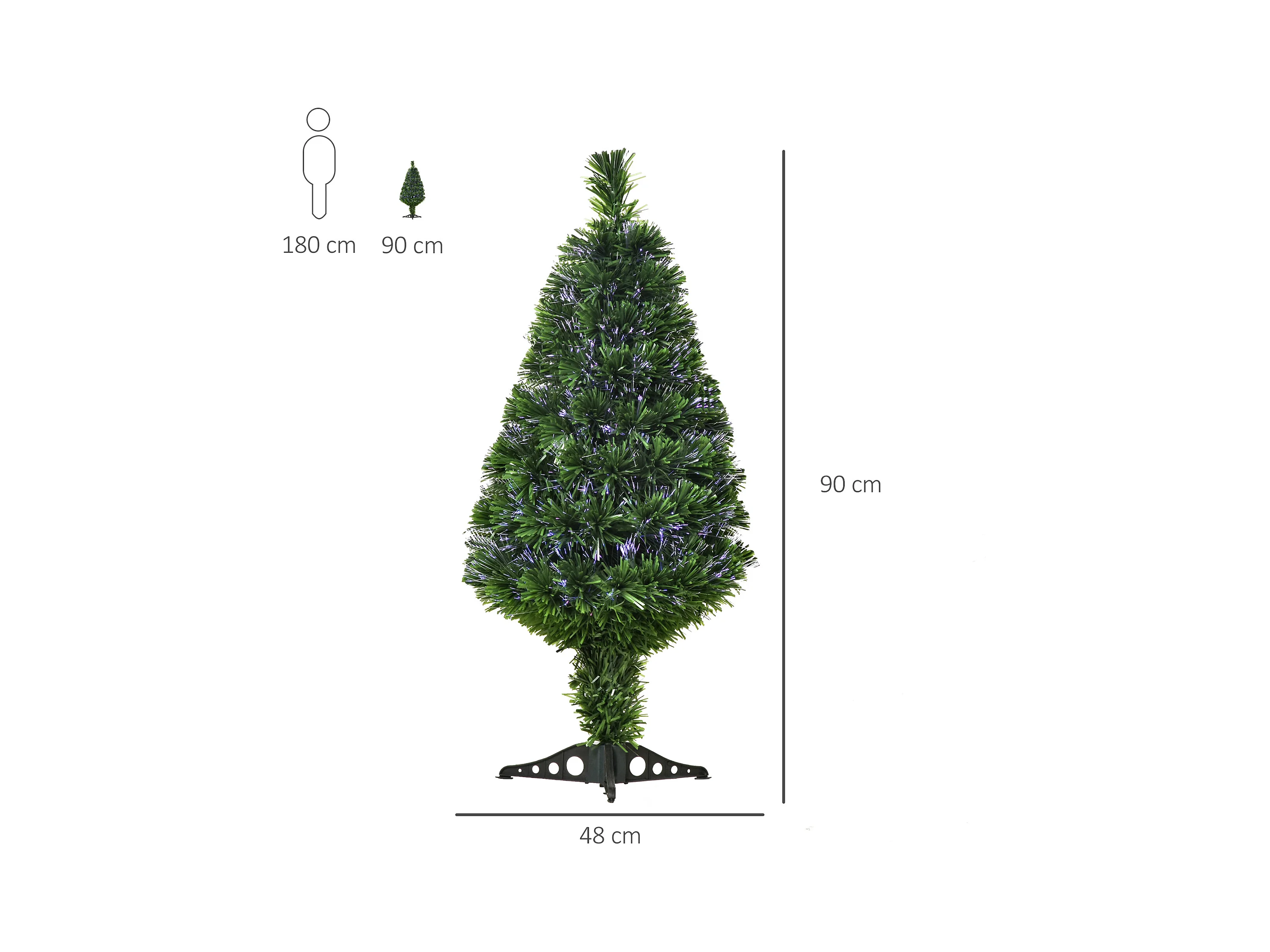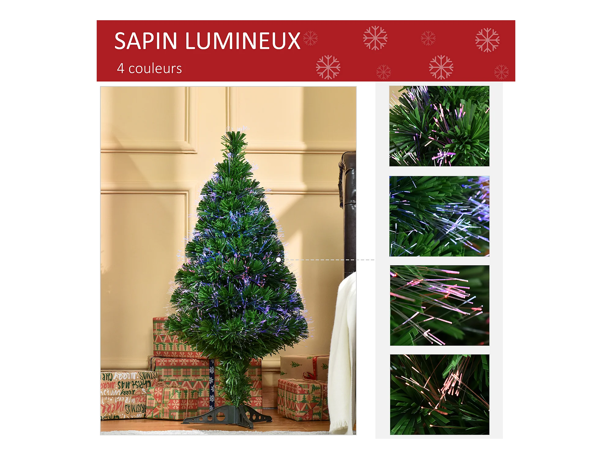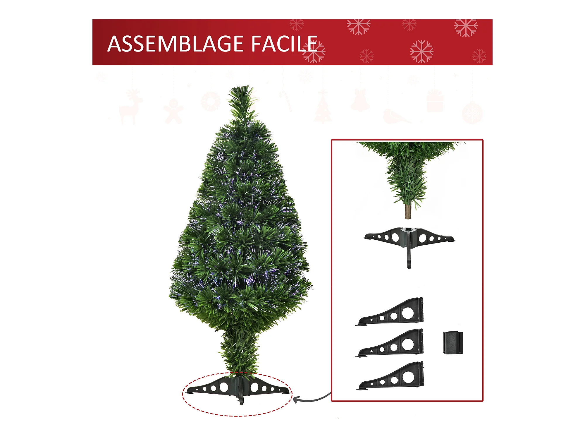 Sapin de Noël artificiel lumineux fibre optique multicolore + support pied Ø 48 x 90H cm 90 branches vert