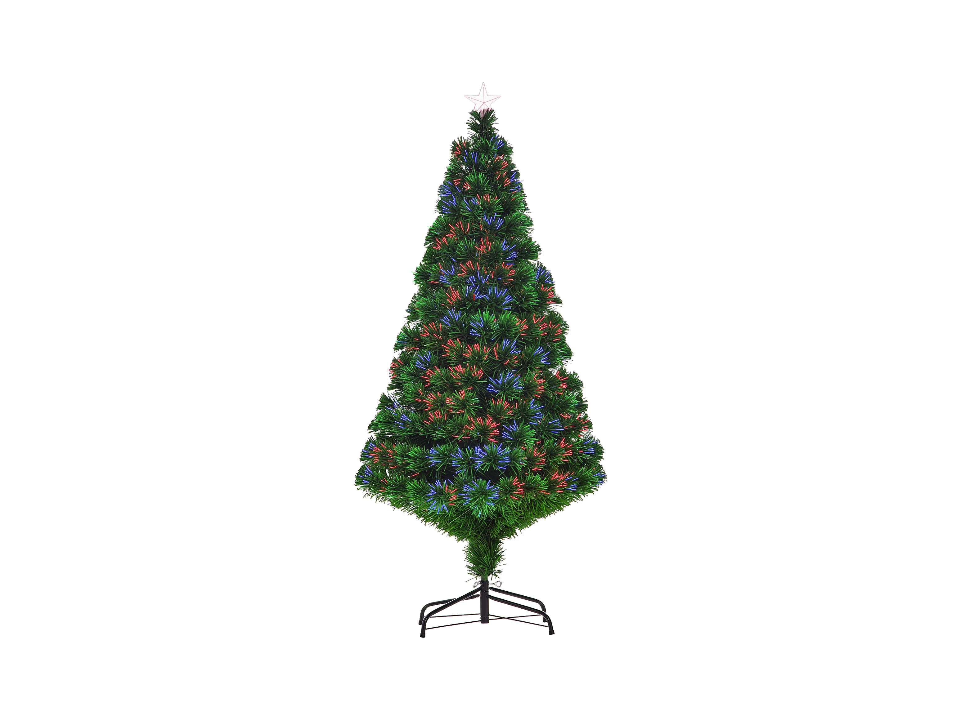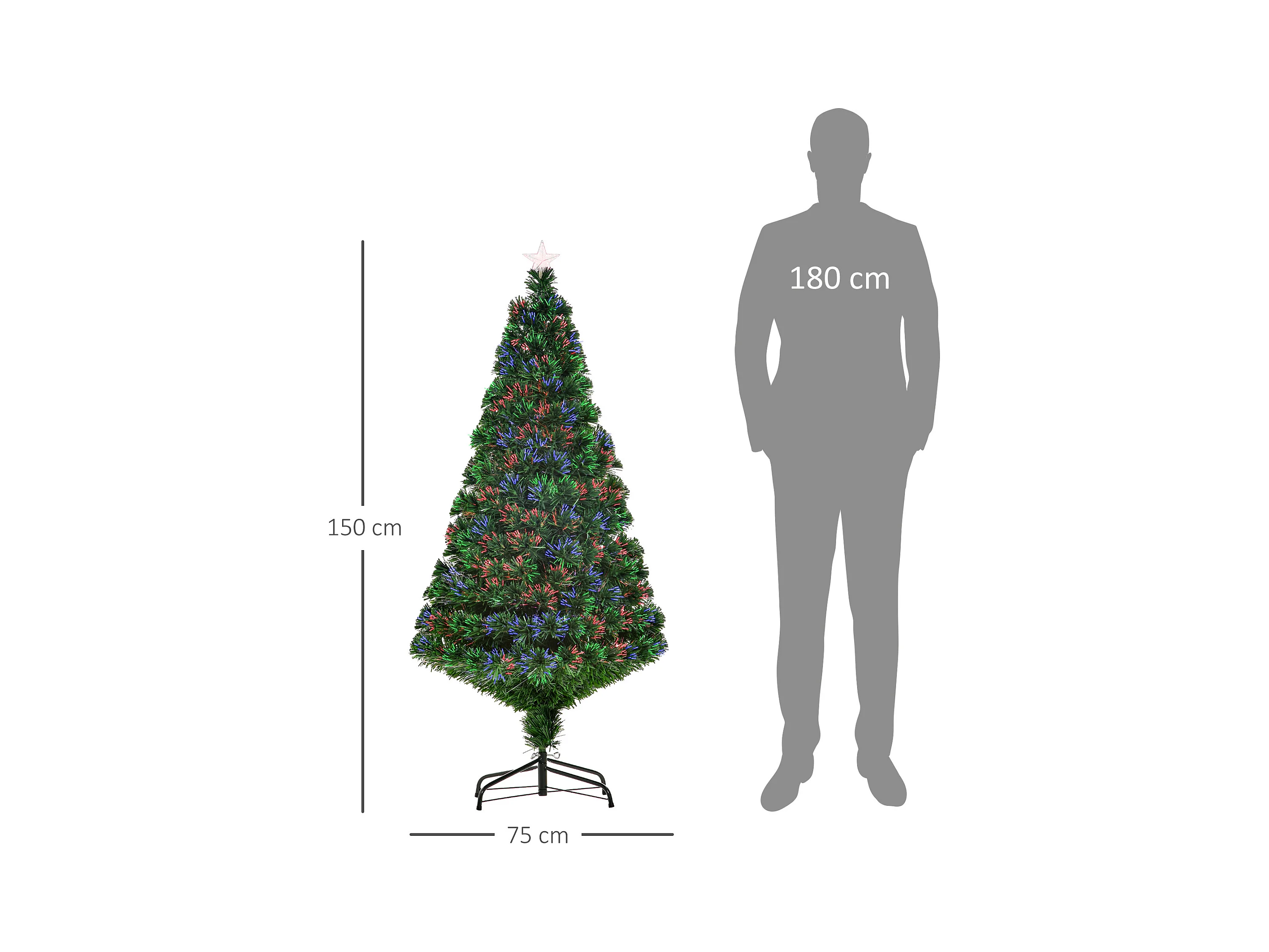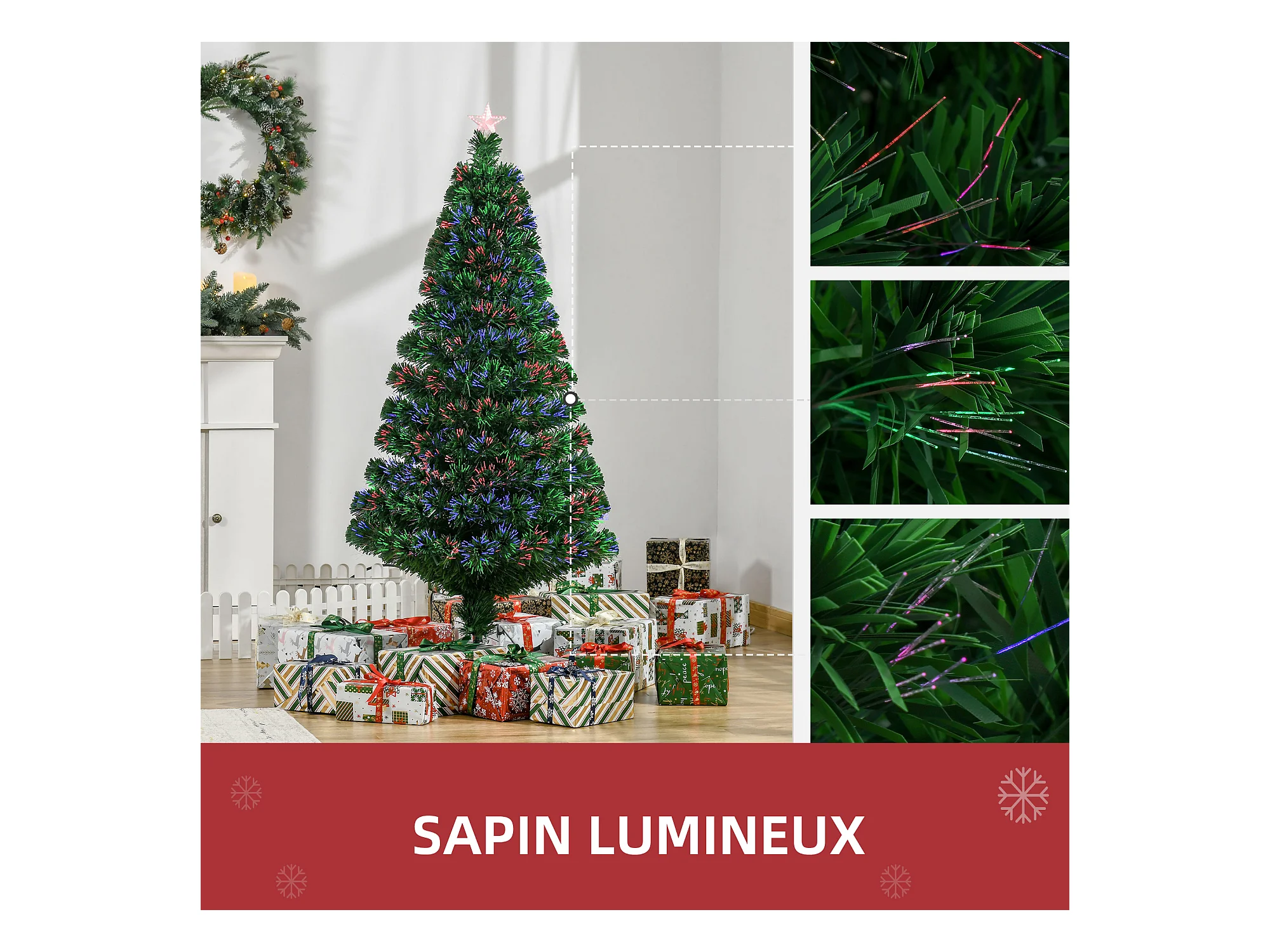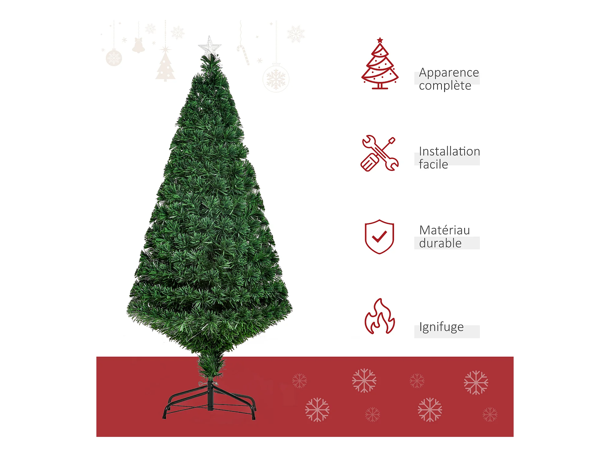 Sapin de Noël artificiel lumineux fibre optique multicolore + support pied Ø 75 x 150H cm 180 branches étoile sommet brillante vert